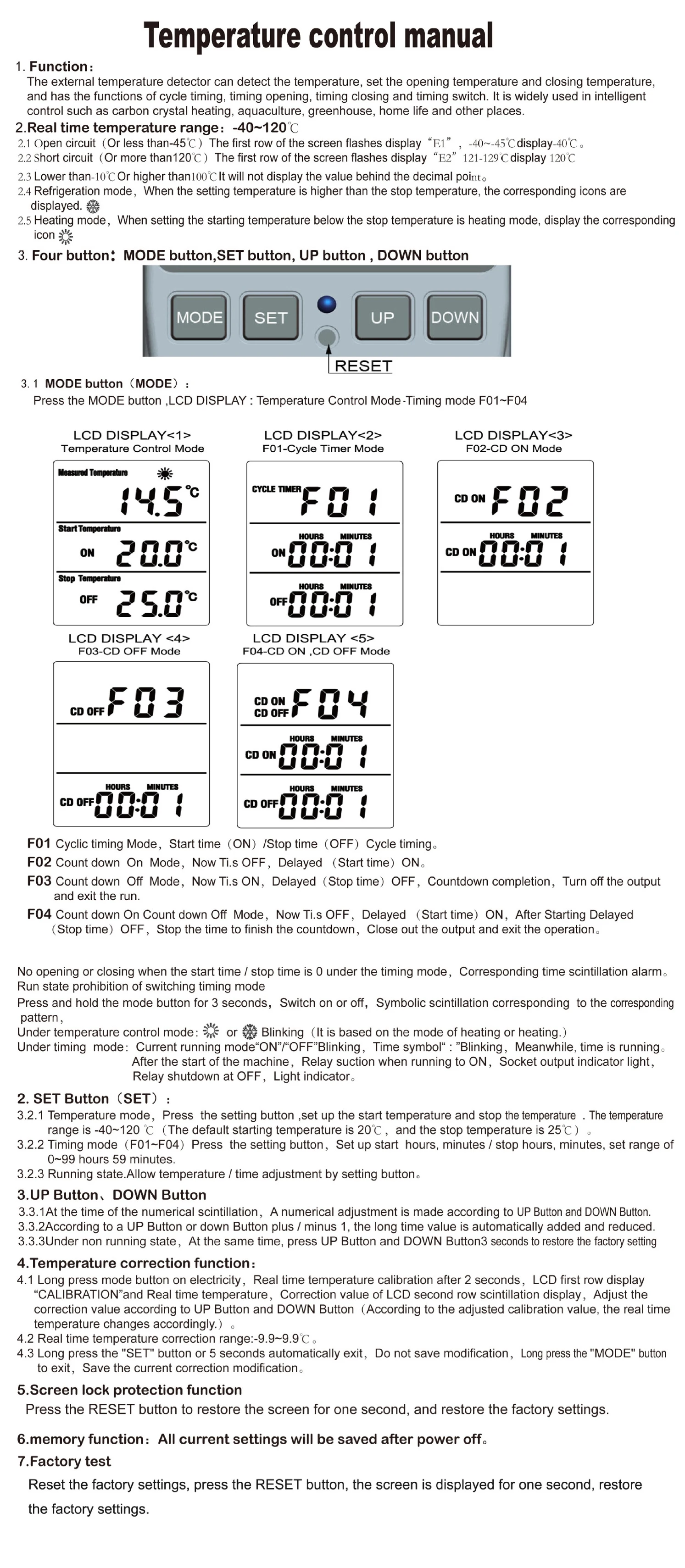 As shown below, this is a timer, only the timer function, please buy it carefullyThermostat DescriptionTechnical parameters:Voltage 110V~230V AC 50Hz/…