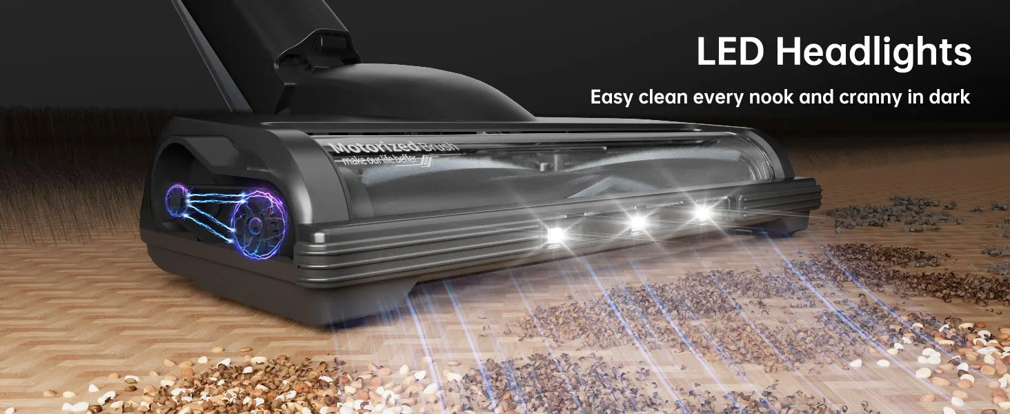 [Upgrade Friendly Design for Enhanced Cleaning] We have upgraded the power floor brush head of FABULETTA to efficiently tackle various floor surfaces and low-pile carpets. The built-in independent motor provides extra power for quick and thorough cleaning. The 35.6-45.2 inch retractable Alloy Tube and Rotating Floor Brush Head with flexible 150° swivel sideways and 90° up and down, along with the inclusion of 3 LED Lights, make cleaning even easier. No dark area can hide dust and grime any longer.