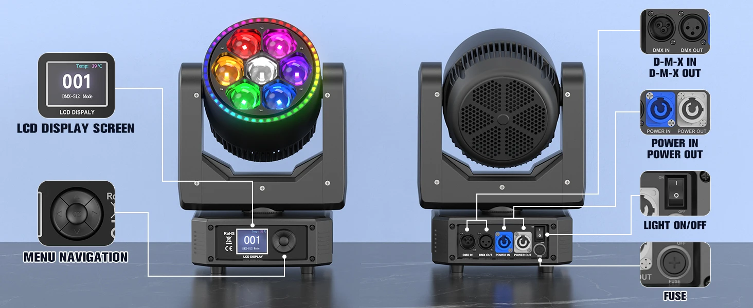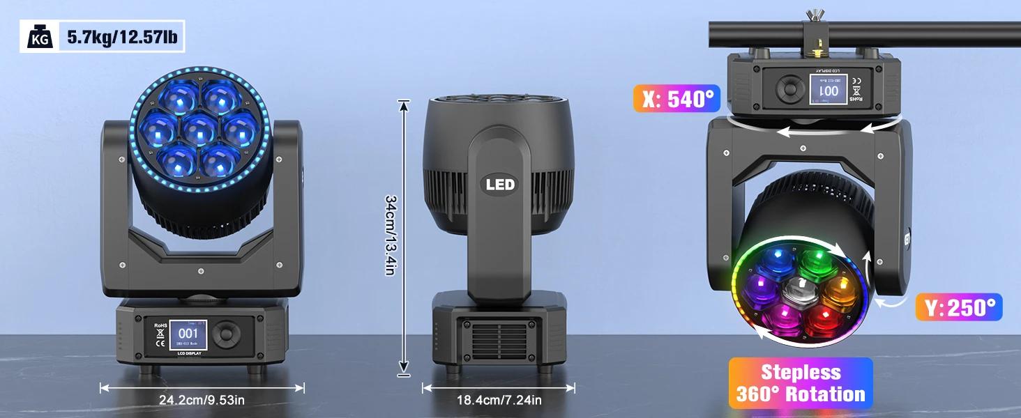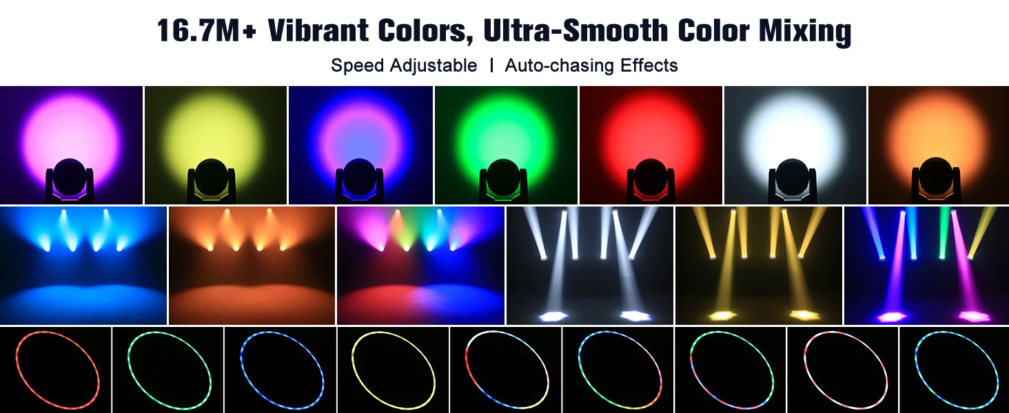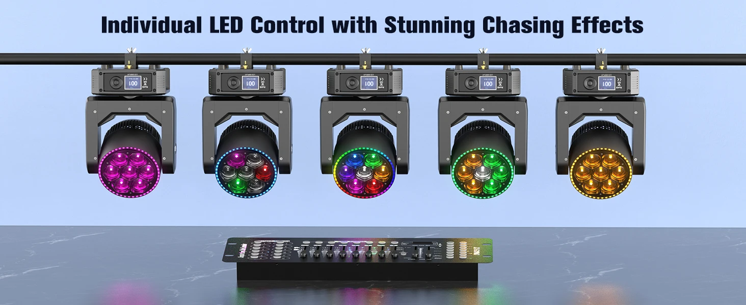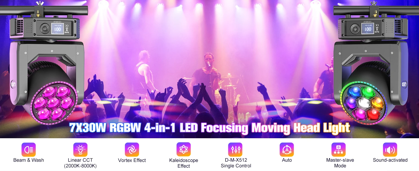 Equipped with 7 powerful 30W RGBW LEDs for intense brightness and ultra-pure colors, supporting smooth infinite mixing (16.7M+ colors).