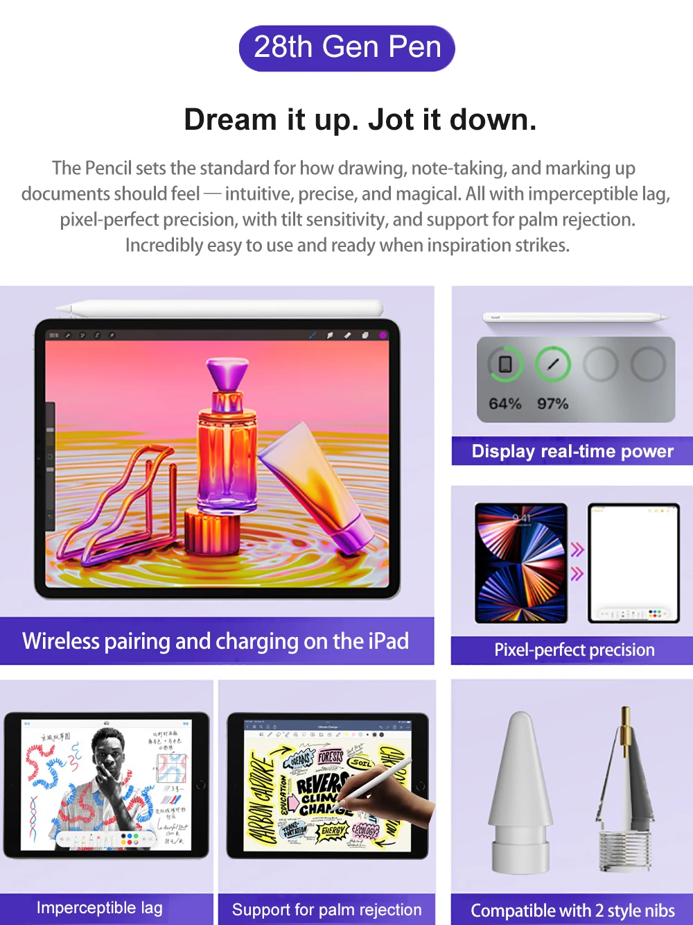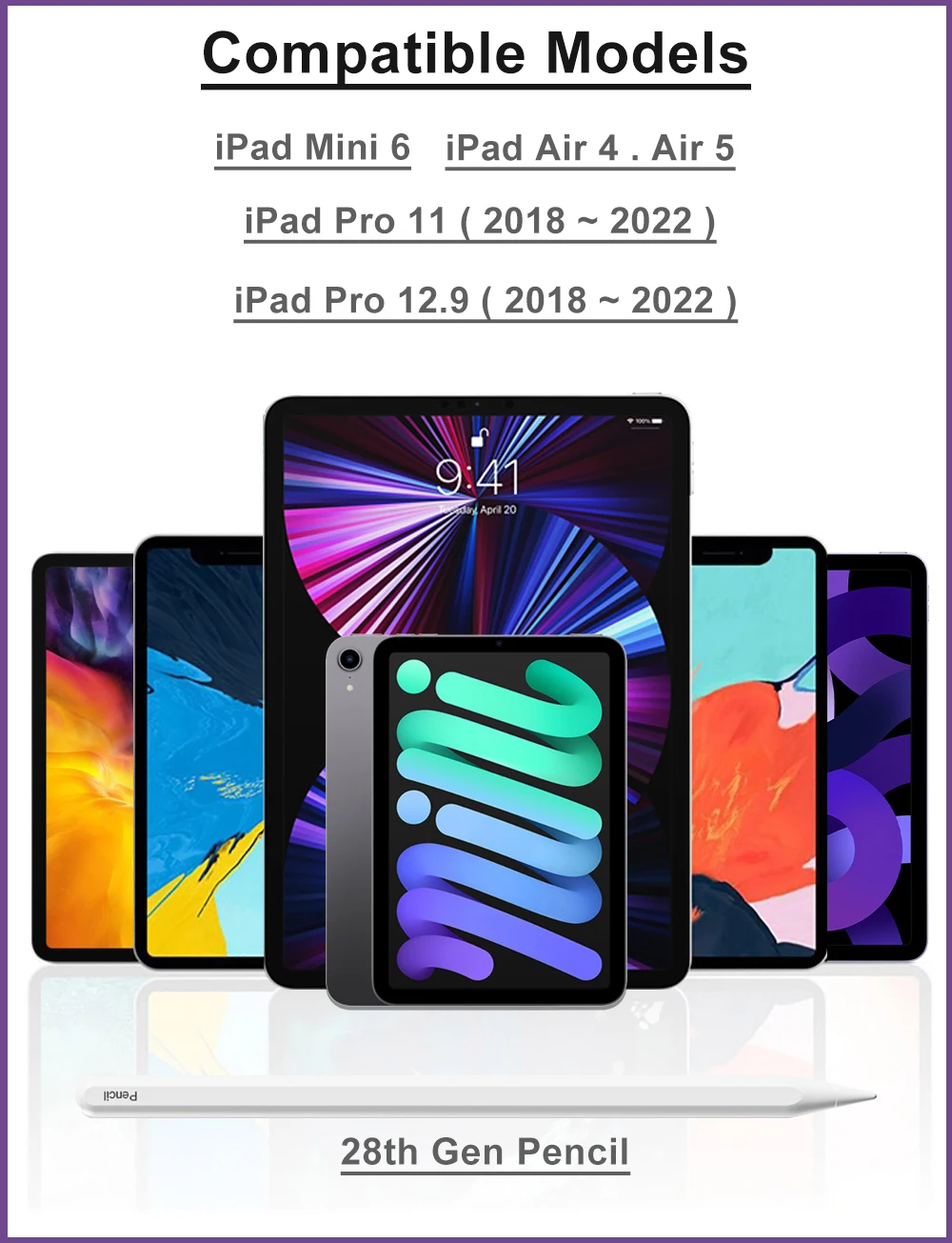 Supports wireless pairing & charging, For iPad Air 4th & 5th / Pro 11 1st & 2nd & 3rd / Pro 12.9 3rd & 4th & 5th / Mini 6th generation