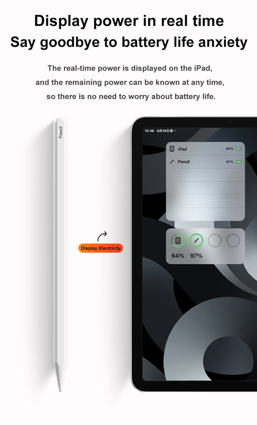 After connecting to Bluetooth, you can view the real-time power and charging of the Pencil on the iPad.