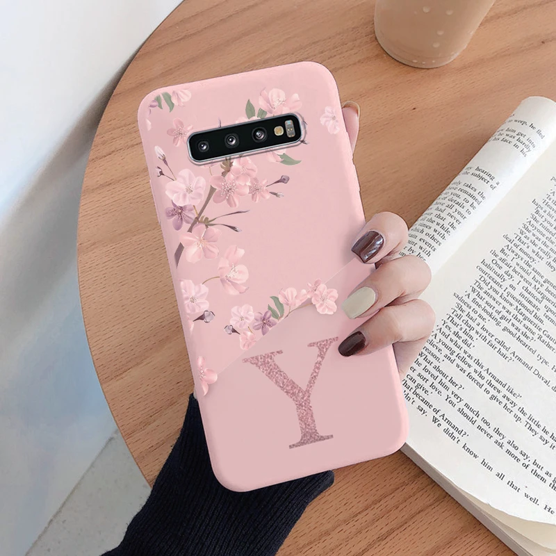 For Samsung Galaxy S10 S10E S 10 Plus Phone Cover Pink Letters Cute Flowers Pattern Soft Silicone Funda For Samsung S10+ Coque
