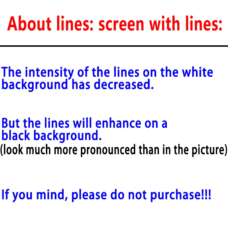 6:The frame of the screen will have scratches (the screen with high price will have slight scratches, while the screen with low price will have obvious scratches) If you mind, please do not order, please do not use the scratched frame as an excuse to cause disputes.