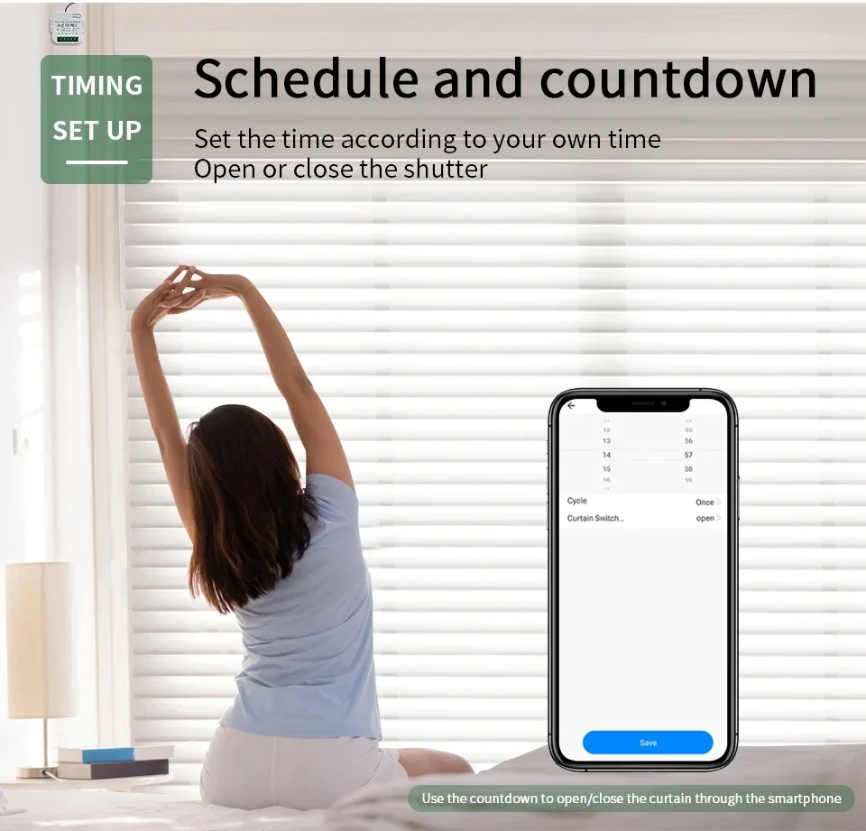 [Timer Setting and Family Sharing]:Take full control of your blinds intelligently with the timer function on your App, which allows to open/close them at a specific time automatically. Even share device to your family members to connect the devices together, support one mobile control more and multiple phones one.