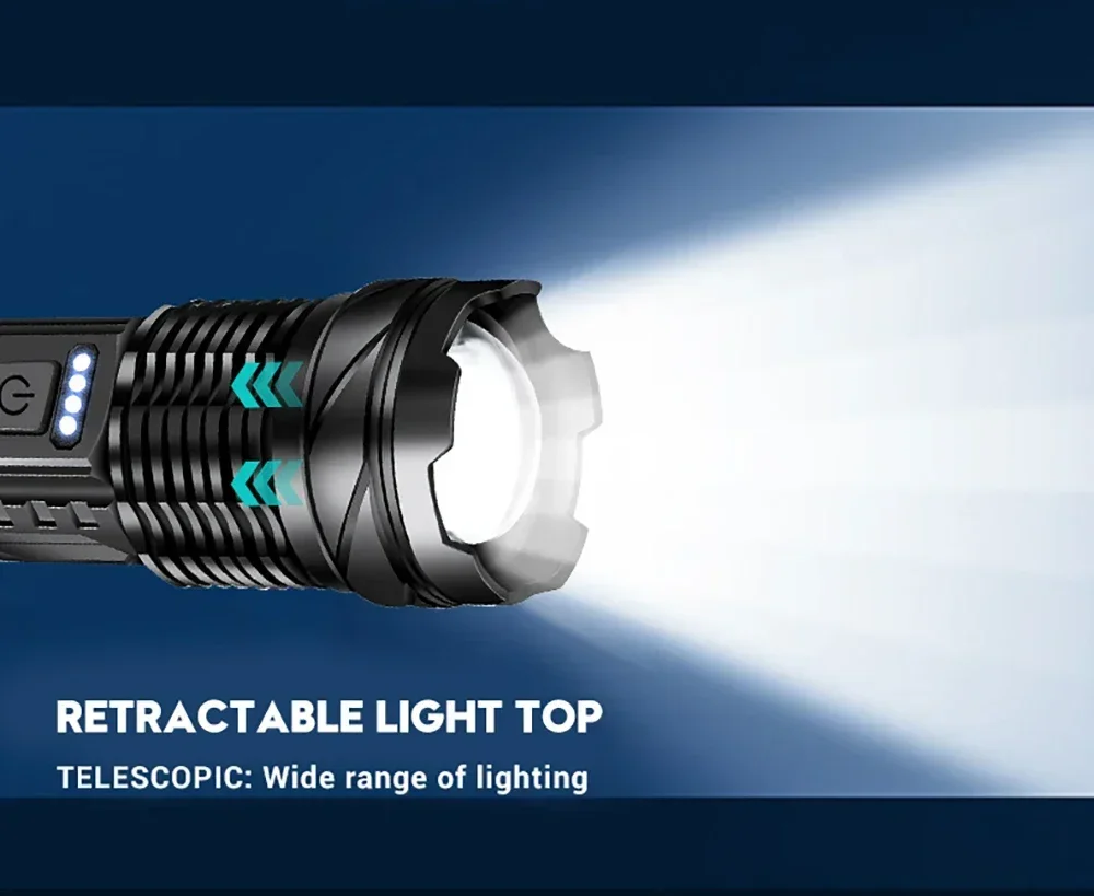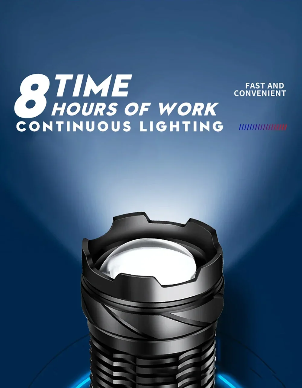 < Super Bright LED: This flashlight uses 7LED+4SMD, making it ideal for outdoor activities such as camping and exploring.
