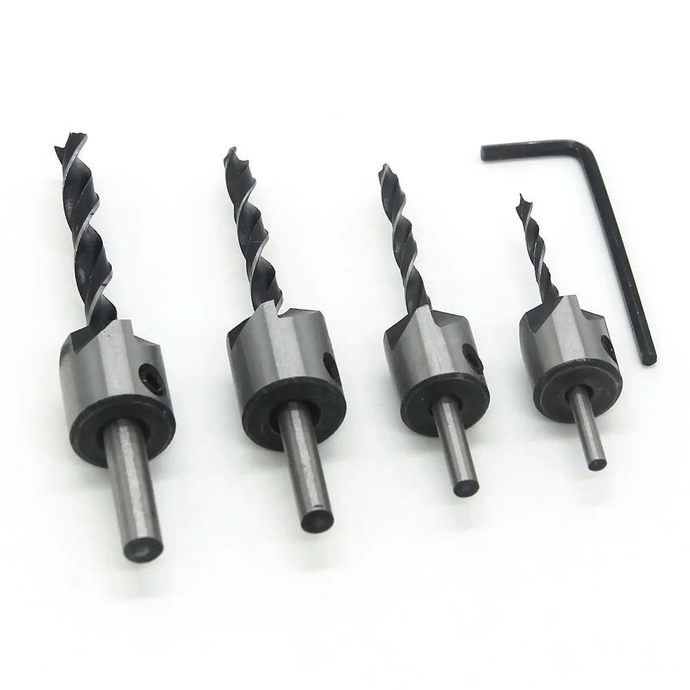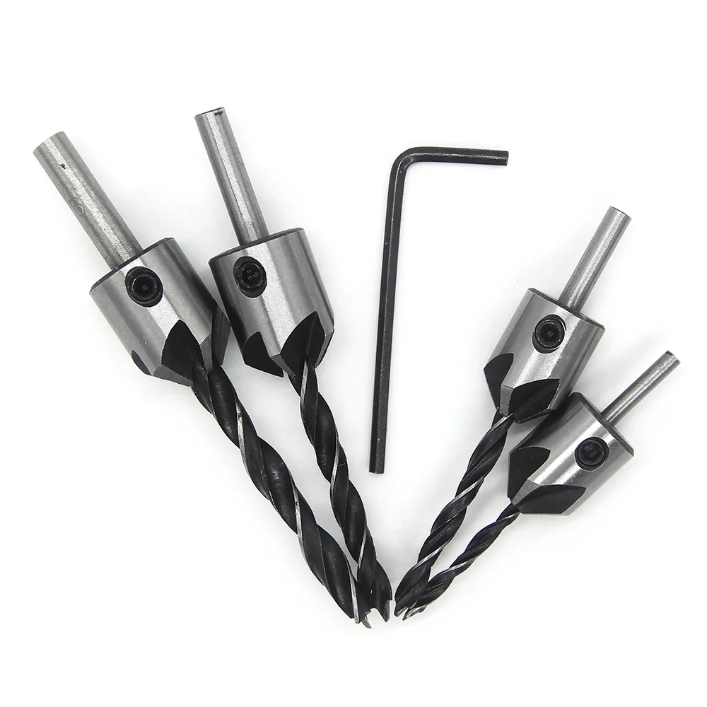 Wood Countersink Drill Set HCS 5 Flute Drill Bit Carpentry Reamer Woodworking Chamfer End Milling Wood Tool 3mm-10mm With Hex Key Wrench