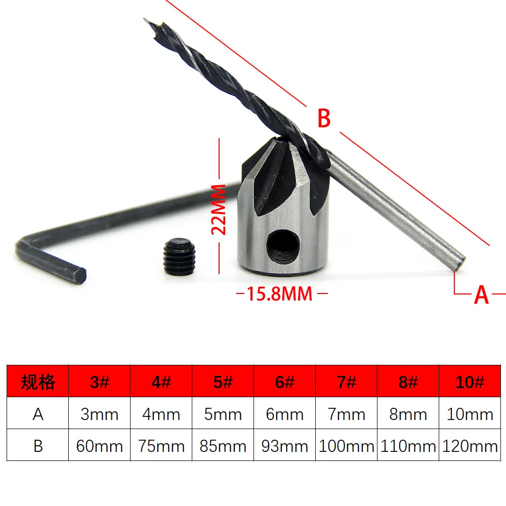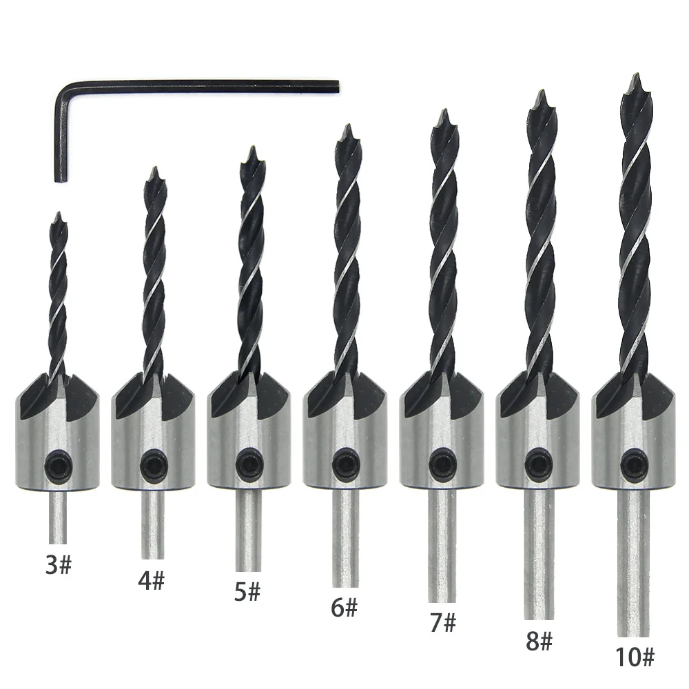 Wood Countersink Drill Set HCS 5 Flute Drill Bit Carpentry Reamer Woodworking Chamfer End Milling Wood Tool 3mm-10mm With Hex Key WrenchFeatures:CAPAB…