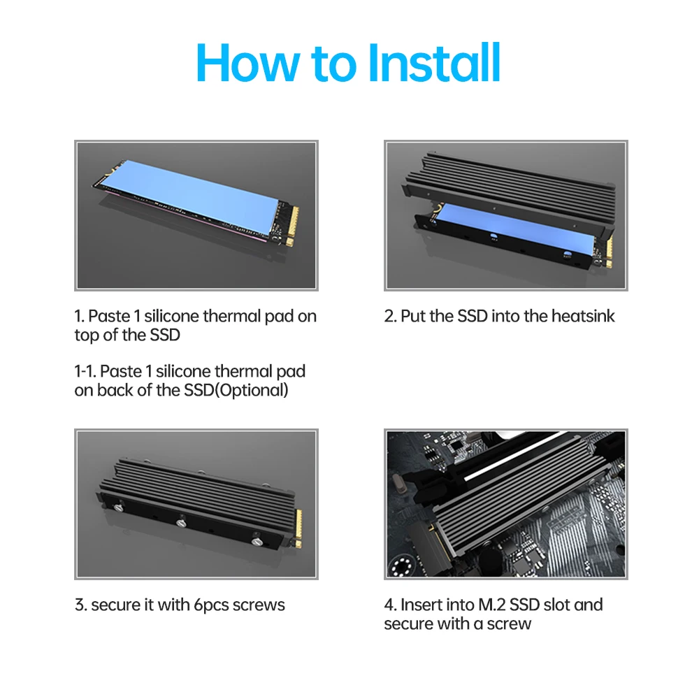 1.Paste 1 silicone thermal pad on top of the SSD