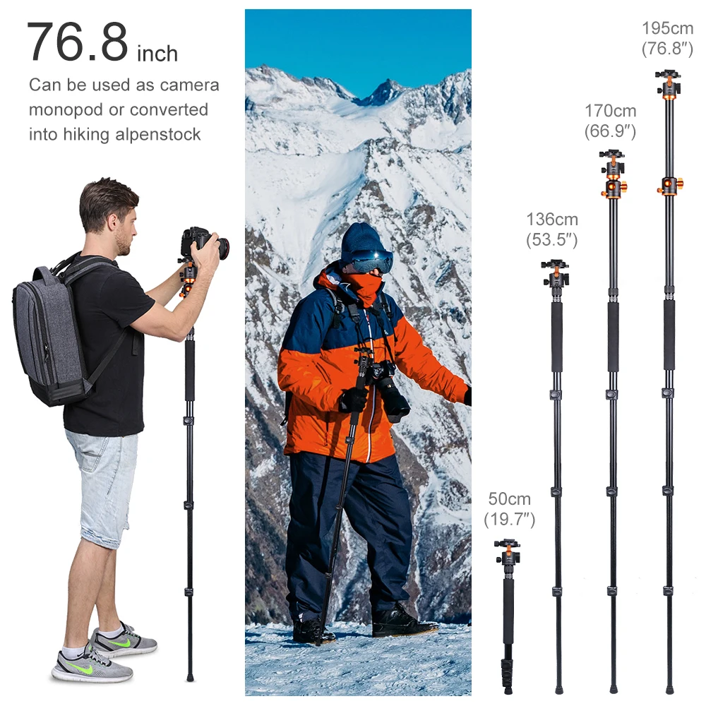 • 【Detachable Monopod】This tripod can be quickly disassembled with the central axis screw and transform into a monopod, providing an alternative way of shooting with ease.