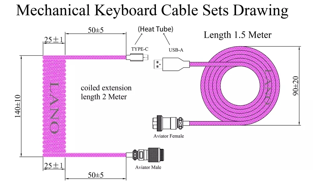 LANO Custom Paracord Coiled Mechanical Keyboard Type C Data Spring Cable GX16 Aviator Coil Spiral Usb C for Gaming Coiled Cable