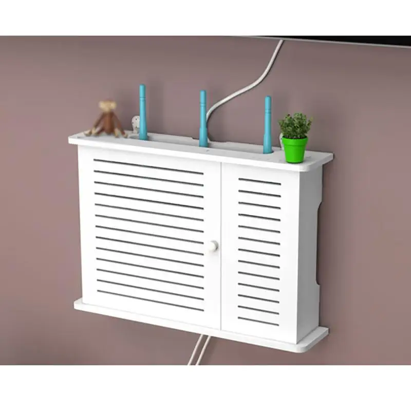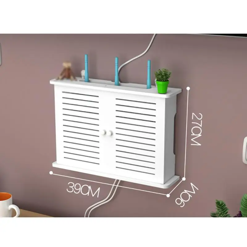 Punch-free single door Wall shelf TV set-top box rack Living room router wall hanging storage boxFeatures:* Made of high-quality wood-plastic board, w…