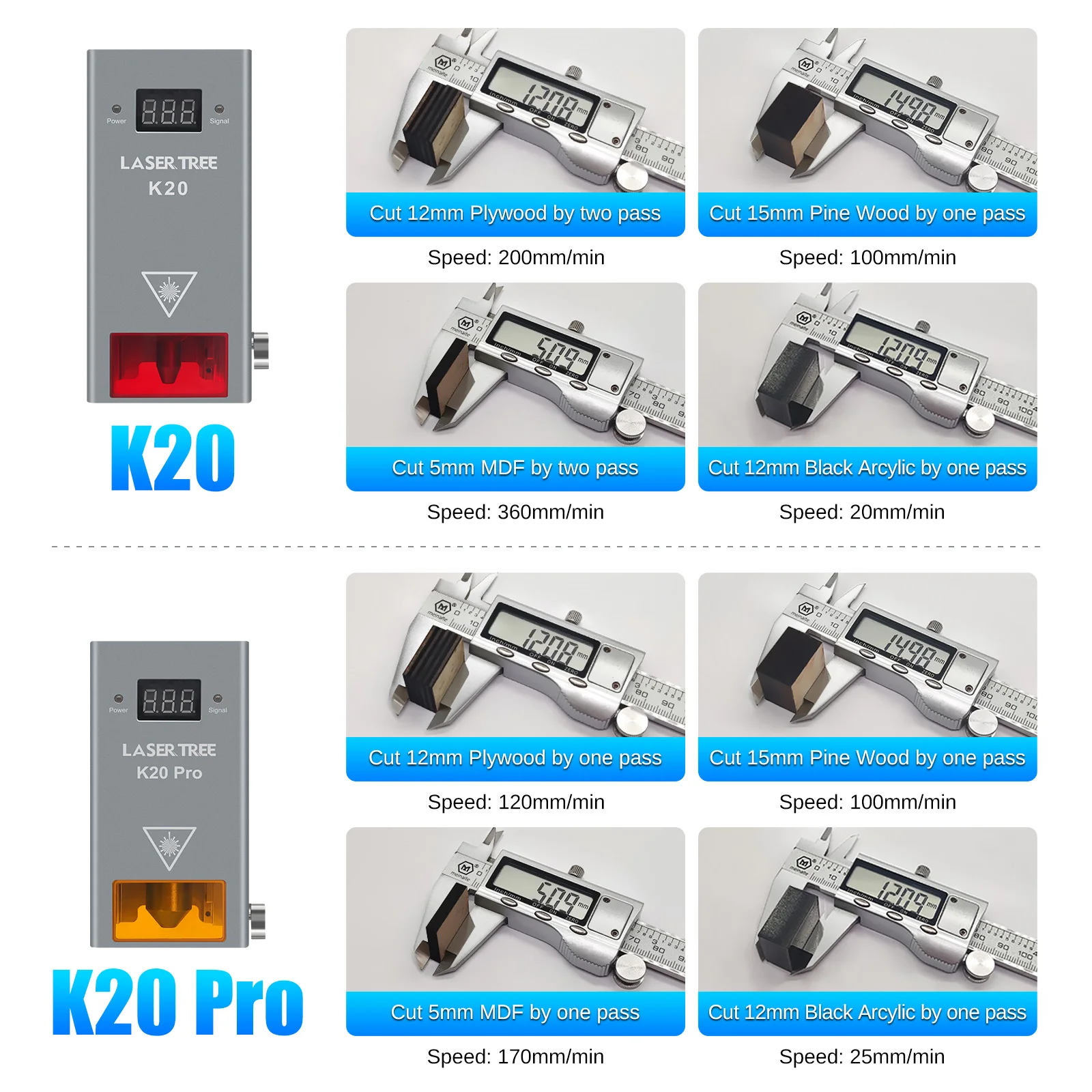 LaserTree K20 is a true 18-22W output optical power laser engraving and cutting module. It uses beam compressed technology to combine 4pcs 5W laser diodes into a powerful laser beam with 20W laser power.