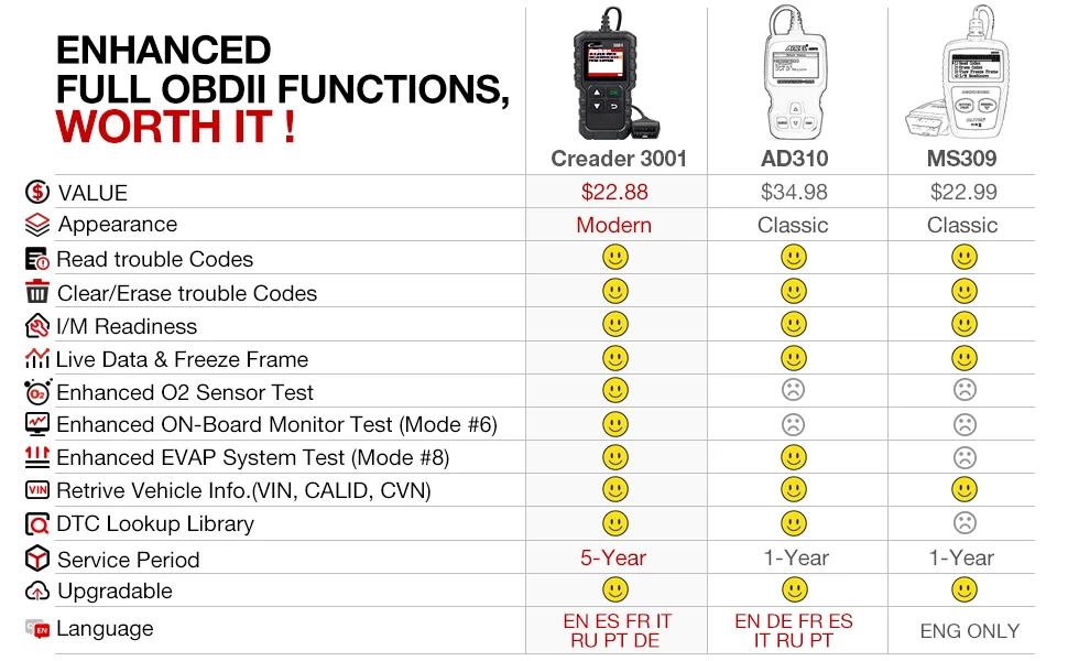 Please Read it Before You Order !!!1. LAUNCH CR3001 is only support Engine System , Does not support ABS SRS Airbag system and others System2. LAUNCH …