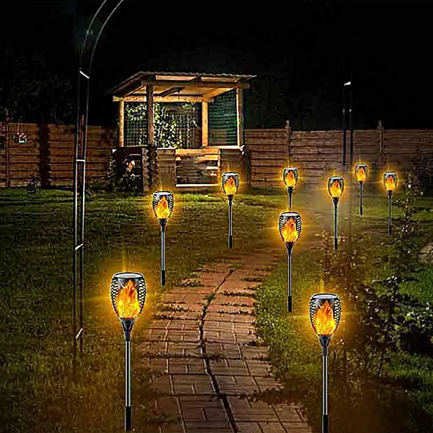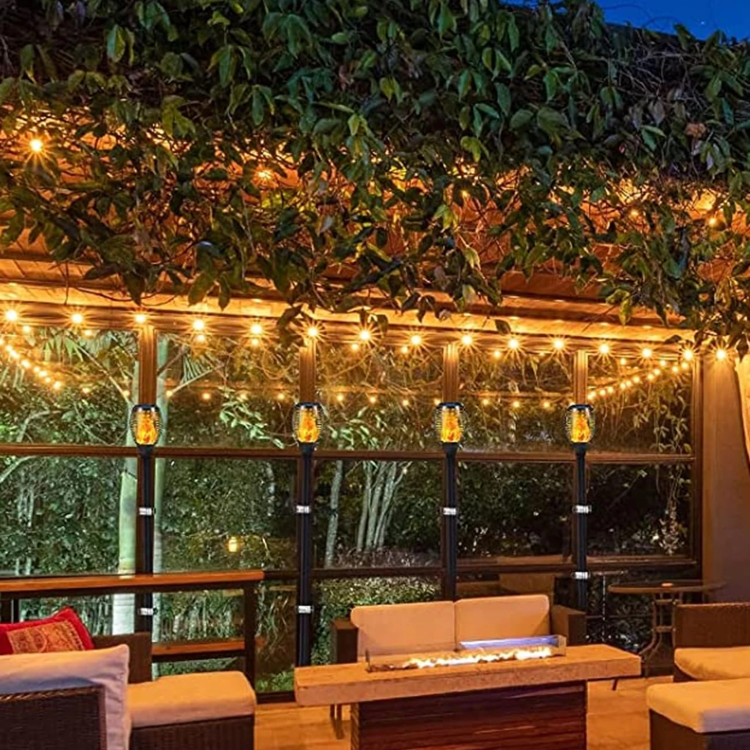 4. Enjoy the ambiance of a warm and inviting glow with these contemporary flame lamps, perfect for illuminating your outdoor space and creating a cozy atmosphere.