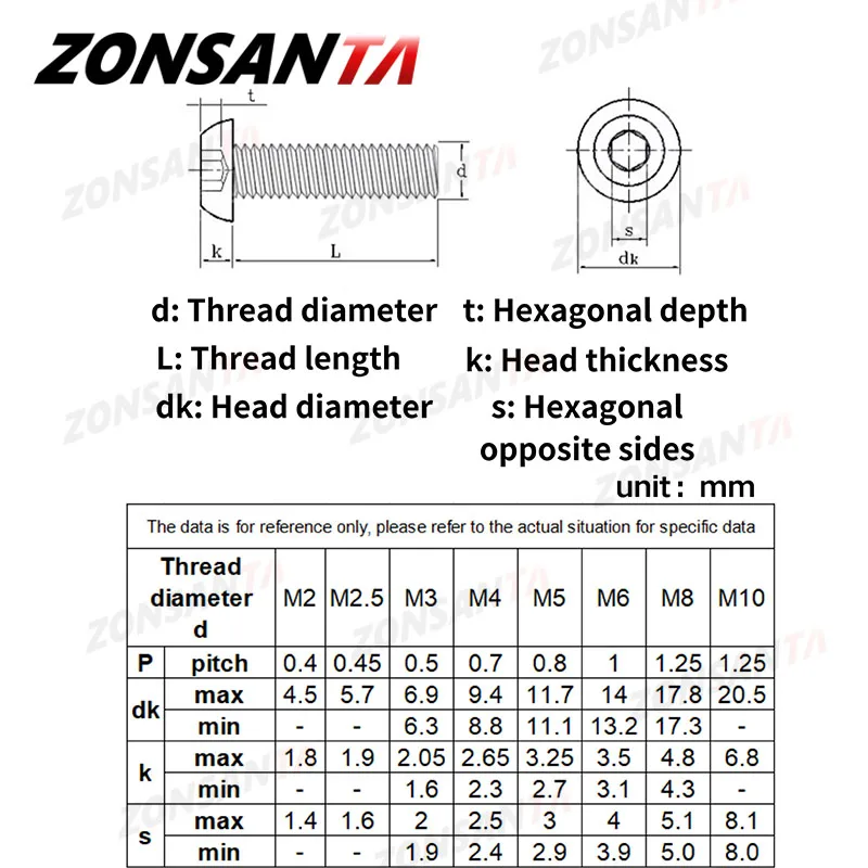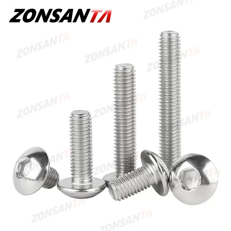 Product Name: M2 M2.5 M3 M4 M5 M6 M8 M10 304 Stainless Steel Round Pan Head Hex Socket Screws Mushroom Head Hexagon Socket Button Head Bolt Screws.