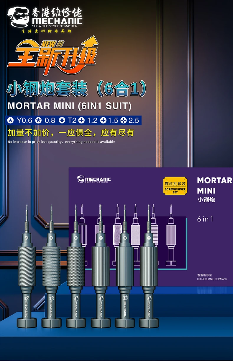 Mechanic MORTAR mini Precision Screwdriver, Mechanic ishell Small steel gun Series precision screwdriver set for iphone repair opening tool,
