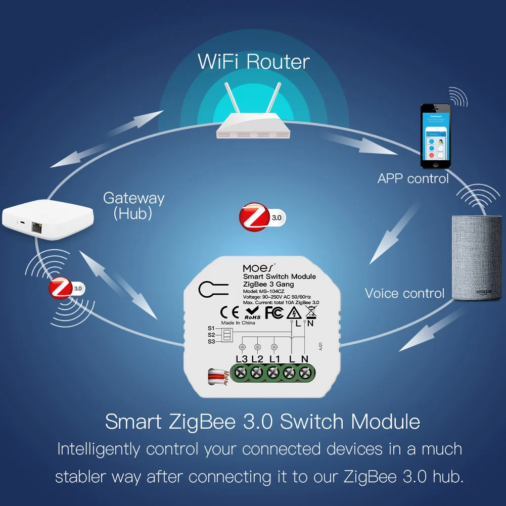 4.Considering the status of unstable network or no network,ZigBee 3.0 switch module is really an irreplaceable must to combine with ZigBee gateway to form a home LAN,NO MORE WORRY about no and weak network,easily get control via connected devices as long as there is stable ZigBee signal;Allows for more devices connected via ZigBee than WiFi protocol;Smartthings supported for this ZigBee switch module specially.