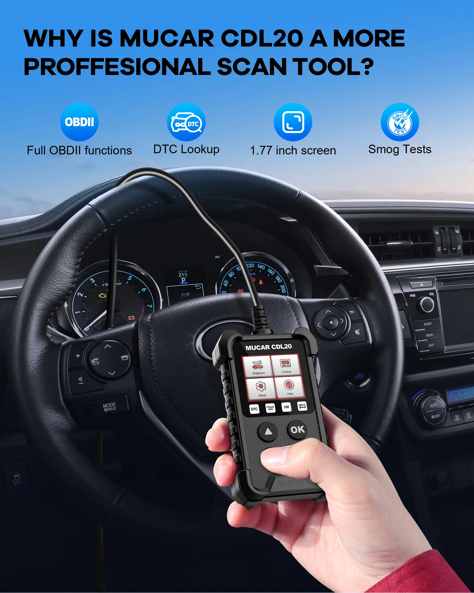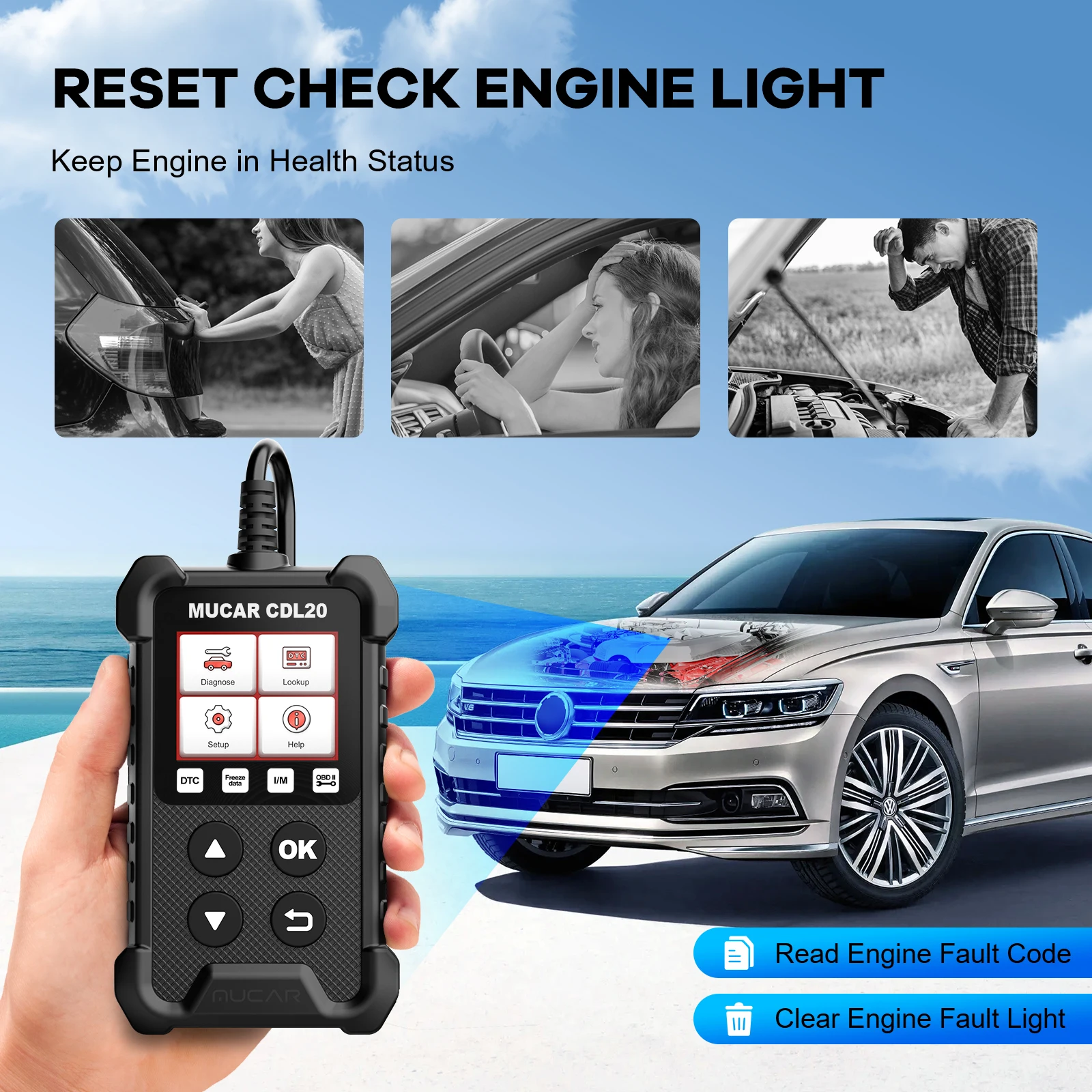MUCAR CDL20 enables you to clear the engine warning light, after completing the full obd2 diagnostics with ease. The main purpose of this tool is to: