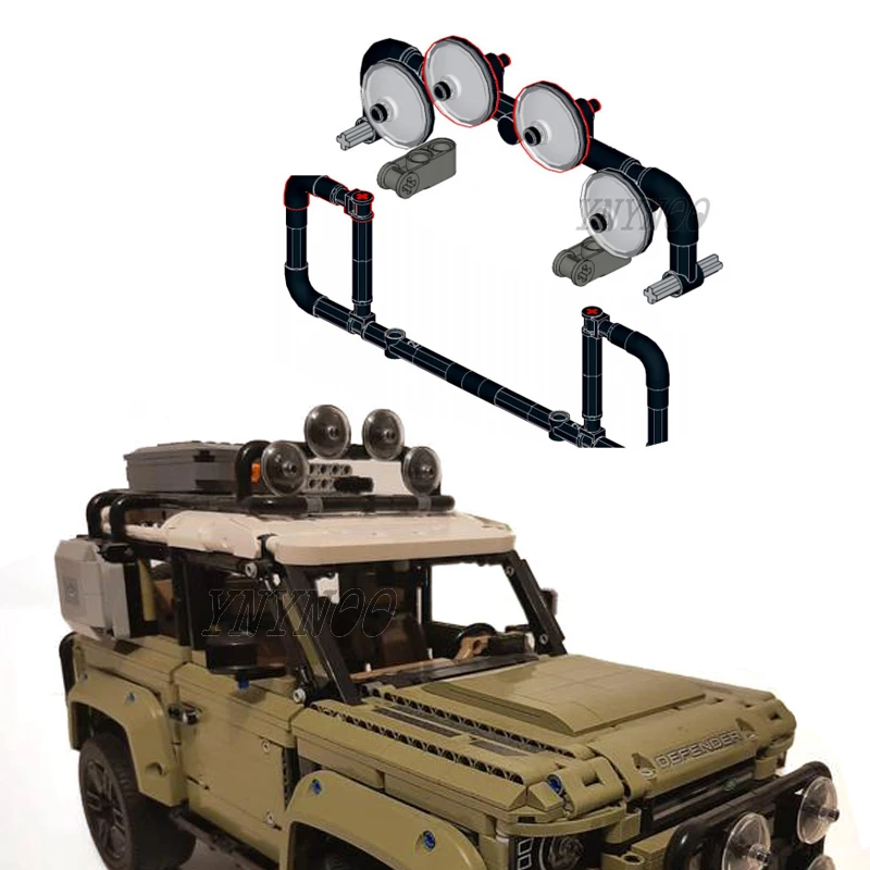 Read Before OrderProduct Name : MOC - Bull Bar/Hunting Lights/Hitch fit for 42110 Land Rover Guardian Off-Road Category: MOC WorldPieces: All Differen…