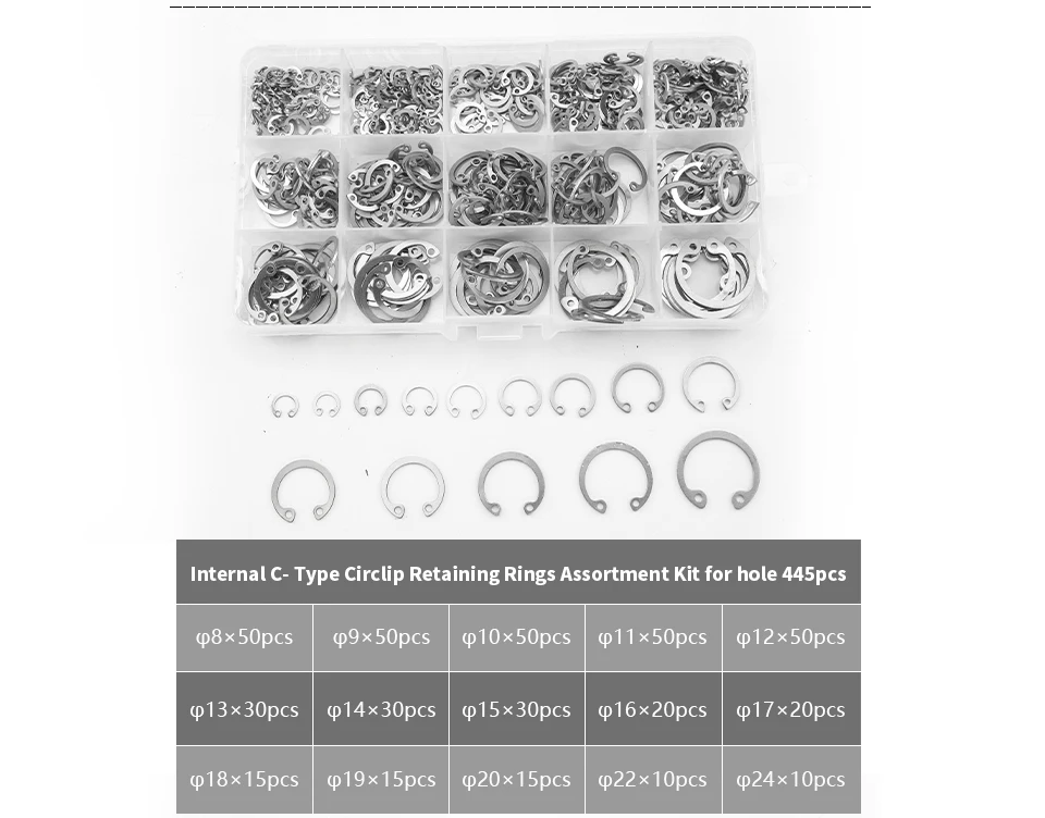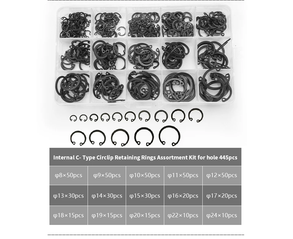 Product description1. [Snap ring set]: Snap rings, also called retaining rings, with 15 different sizes, it can totally meet your needs, squeezing the…