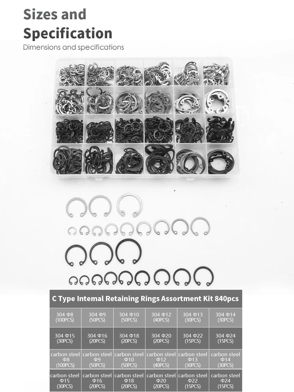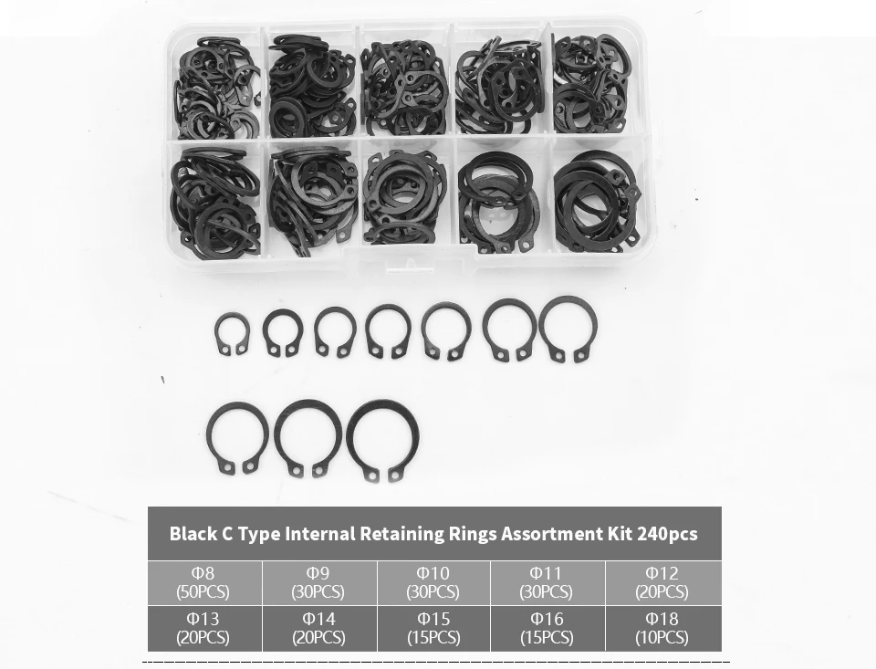 1. [Snap ring set]: Snap rings, also called retaining rings, with 15 different sizes, it can totally meet your needs, squeezing these rings to place them in the groove inside a bore or housing, using retaining ring pliers (sold separately) to install and remove rings.