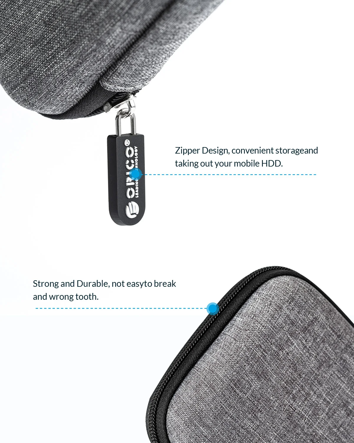 High-quality zipper prevents hard drives or small objects falling out.