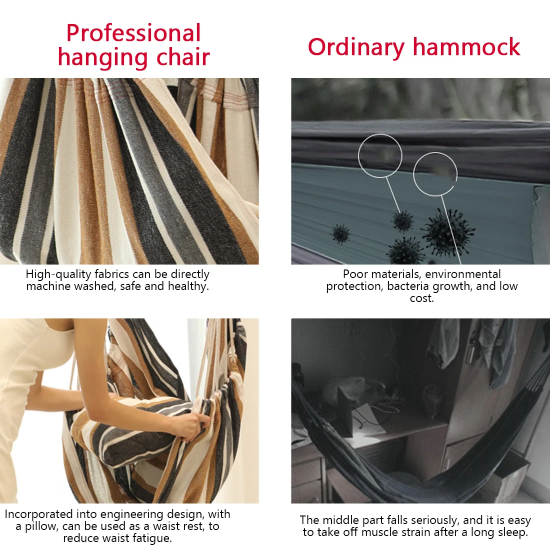 Tight stitches: the use of intersecting seaming process, exquisite workmanship, creating a comfortable hanging chair environment.