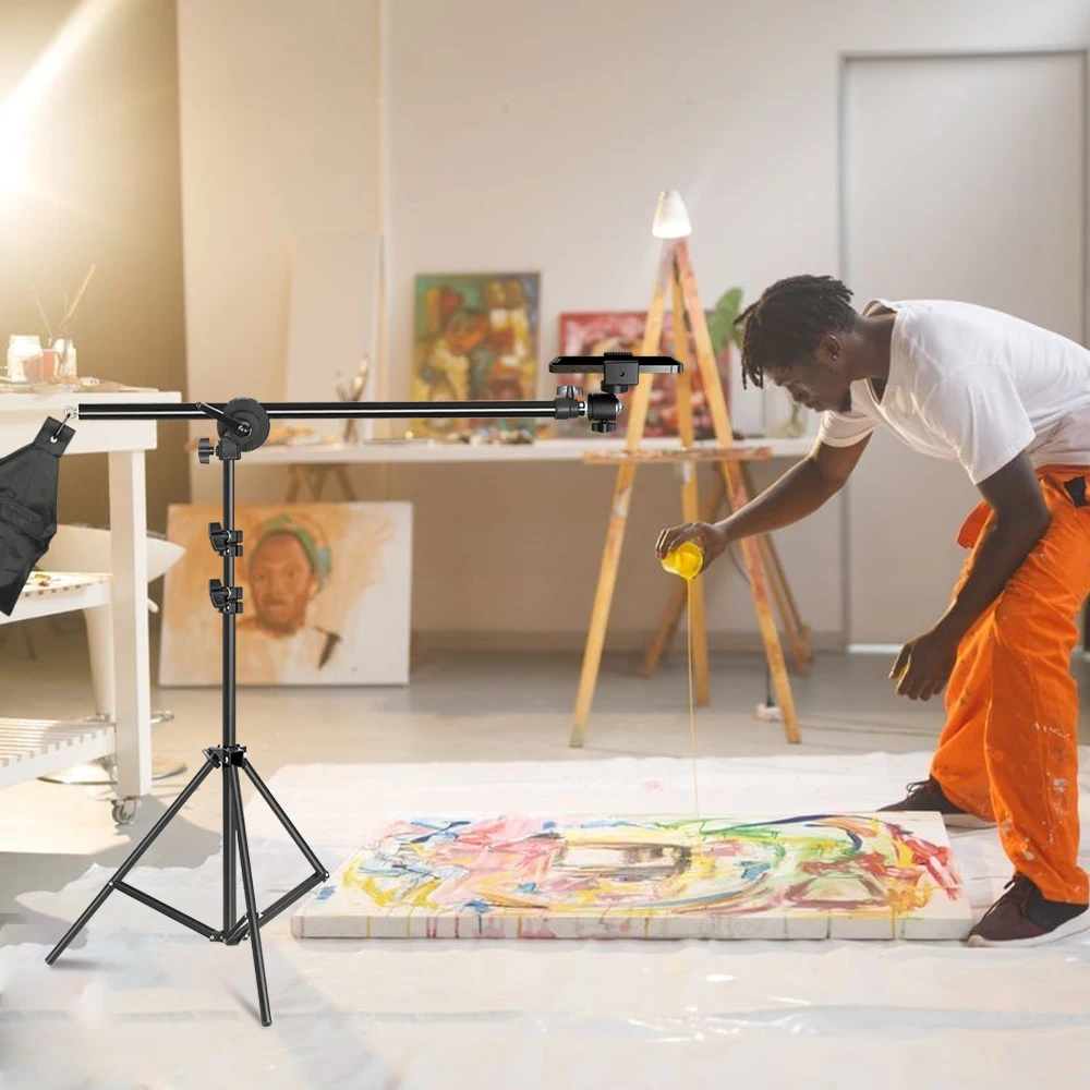 Description59-135cm adjustable cantilever stand+ Pivot Clamp+ Sand Bag: give you much wider range of choices of position; help you find the perfect li…