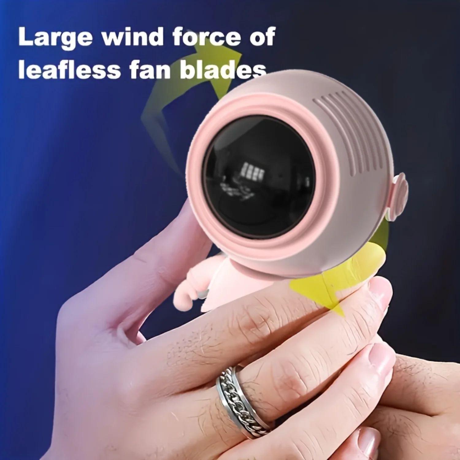 1. Stay cool and comfortable in style with our Portable Astronaut Neck Fan. This quiet, bladeless personal fan is mini handheld and USB rechargeable, making it perfect for on-the-go use. Simply control it with the touch of a button for instant relief from the heat.