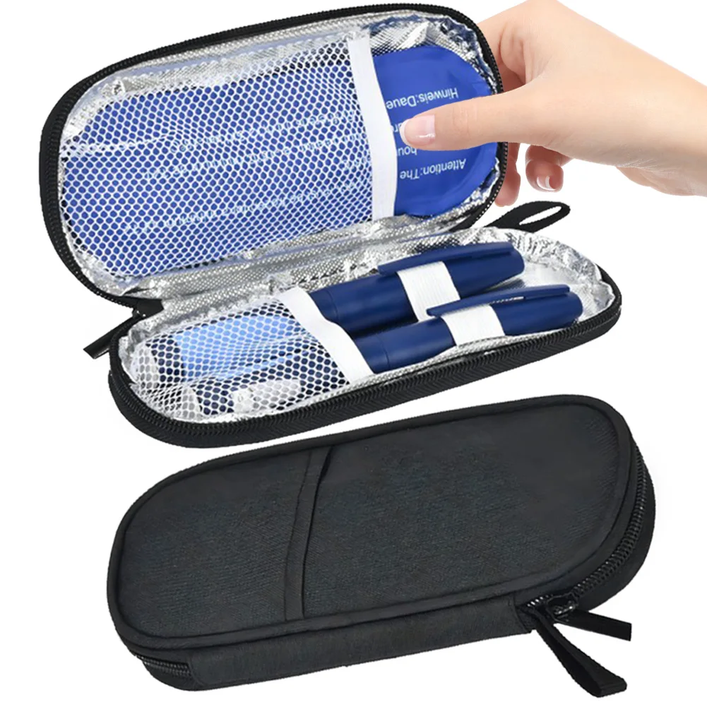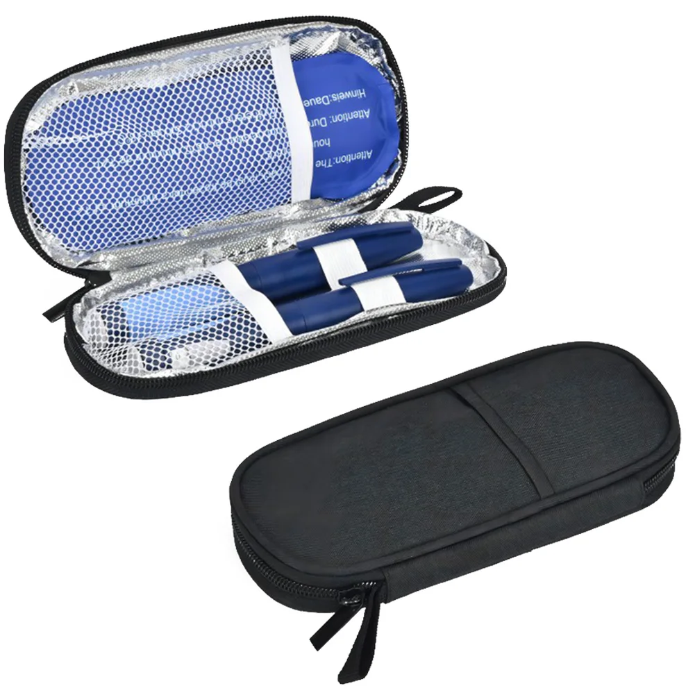 Feature: 1.Waterproof Material Protection and Safety: This diabetic pocket pill protector is crafted from polyester material with a waterproof PU fabric to shield your syringes, vials, and diabetic kit from being crushed during travel. A temperature strip monitors the temperature of the insulin storage pouch. 2.Strong Thermal Insulation: Lined with aluminum foil, this thermal insulated medical cooler ensures excellent insulation and can resist winter chills, making it easy to clean. Keep your diabetes supplies at the right temperature with 2 reusable ice packs. 3.Convenient Size: The insulin refrigerator travel case is easy to use and portable, with a compact size for one-handed operation and easy placement into your suitcase. Ideal for short trips, camping, travel, and emergency kits. 4.Details: The carry-on protector features enhanced thermal-sealing seam technology for better protection. Use this pack with gel packs freezing for 6 to 8 hours or longer, placing insulin pens, refills, or needles in designated areas. 5.Versatile Usage: Compatible with a variety of medications and devices, this pill refrigerated ice pack offers support for maintaining the operational temperature, making it a reliable choice for everyday needs. Specification: Origin: Mainland China Product size: 190x70x20mm Product size: 7.48x2.76x0.79inch Material: PU fabric Note: Due to the different monitor and light effect, the actual color of the item might be slightly different from the color showed on the pictures. Thank you! Please allow 1-2cm measuring deviation due to manual measurement. ![]()