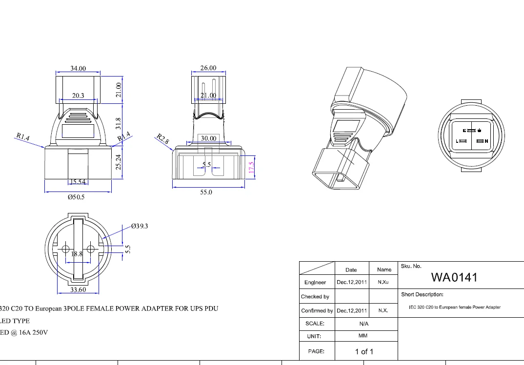 Item Features: 100% brand new travel plug adapter Lightweight and easy to use Plug type: C20 to Schuko CEE7/7 Material: firepro…