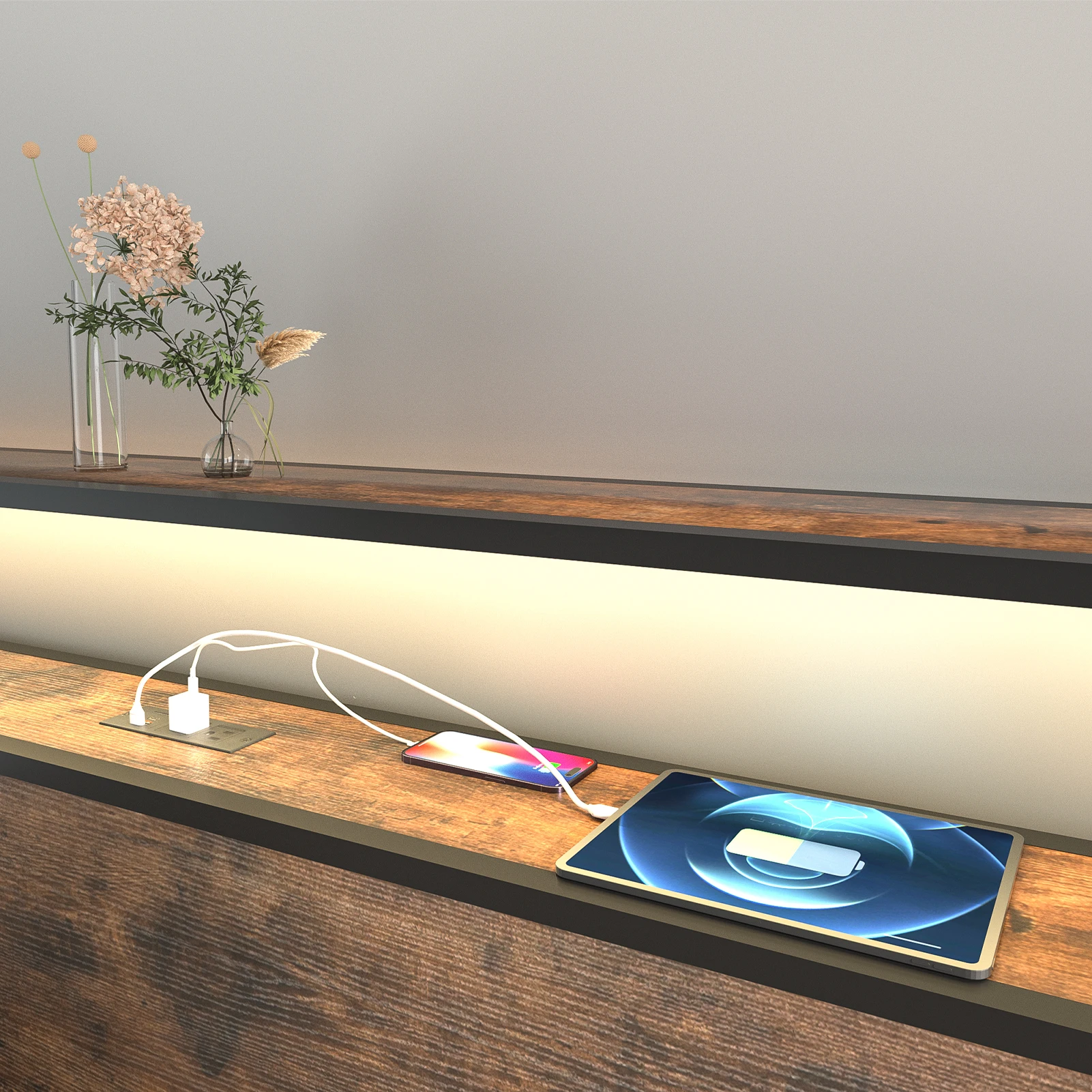 The storage bed have built in 2 Standard Power Outlets and 2 USB Ports in the headboard, make charging mobile phone or ipad easily on bed, and the 2 tier headboard makes common small items such as phones, glasses and books etc within reach easily while we are ready to sleep.