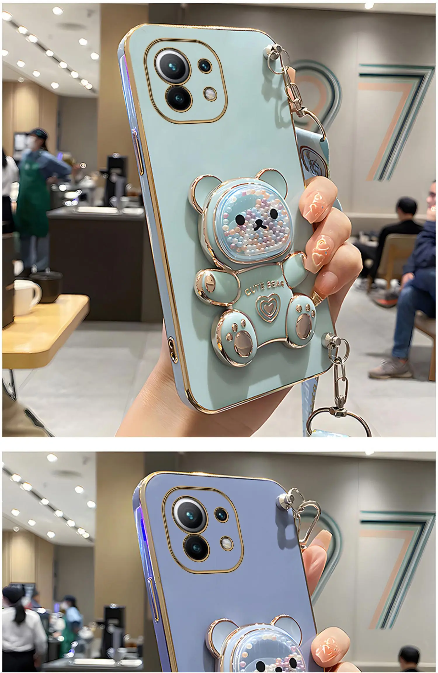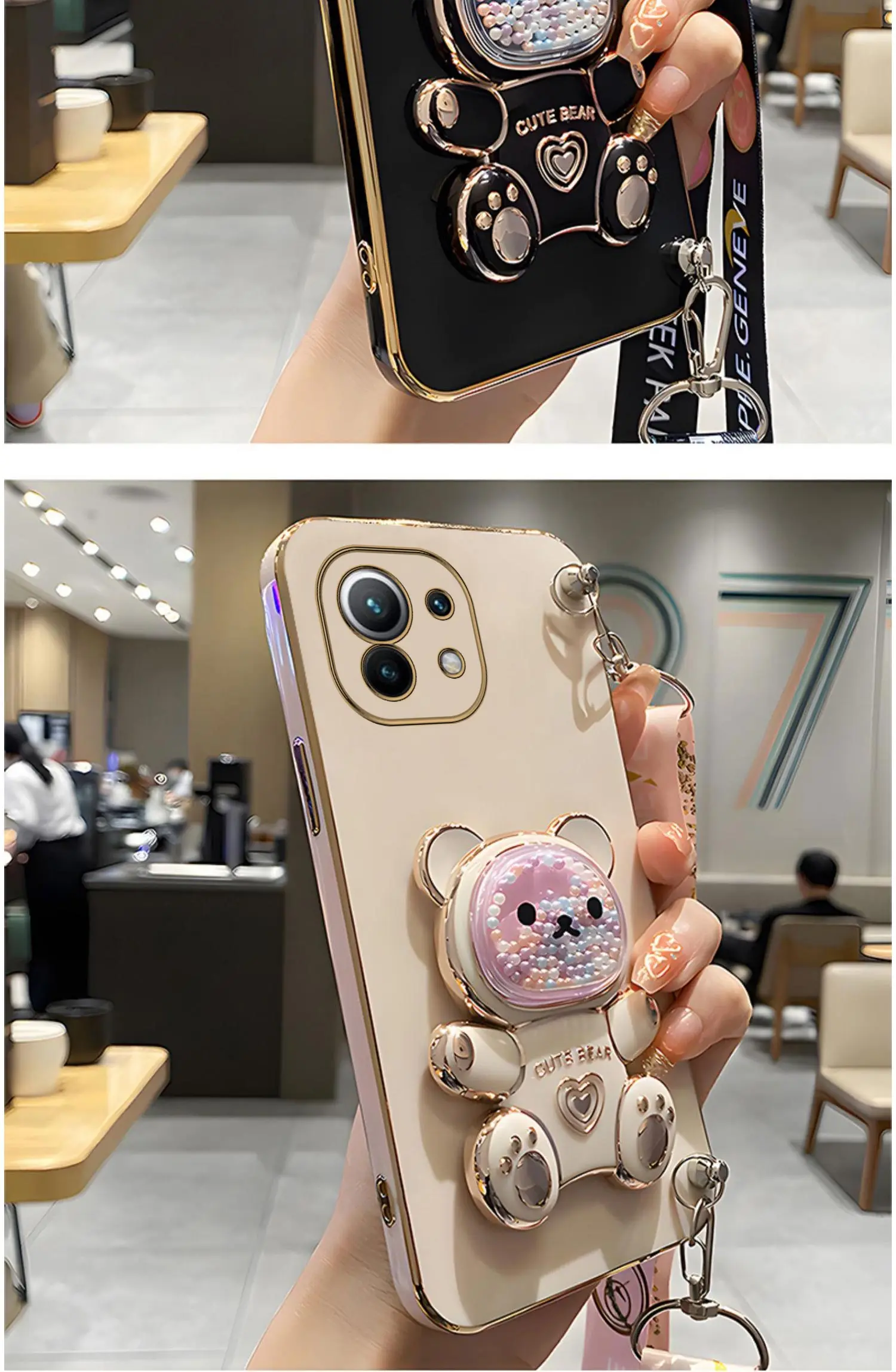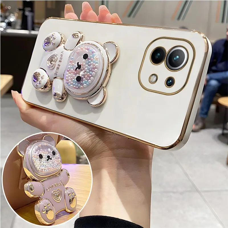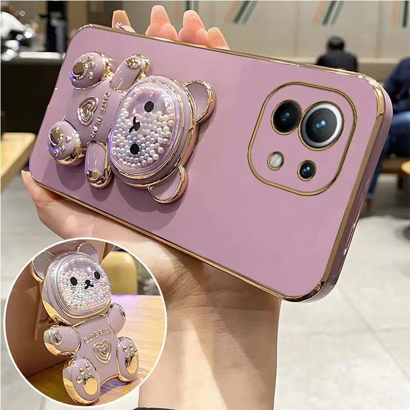 Quicksand Bear Holder Lanyard Phone Case For Xiaomi Mi 12T 11T 12 13 10 11 Lite Mi13 13 Pro 13Lite 5G 8 9 9T Strap Stand CoverCute Quicksand Bear Hold…