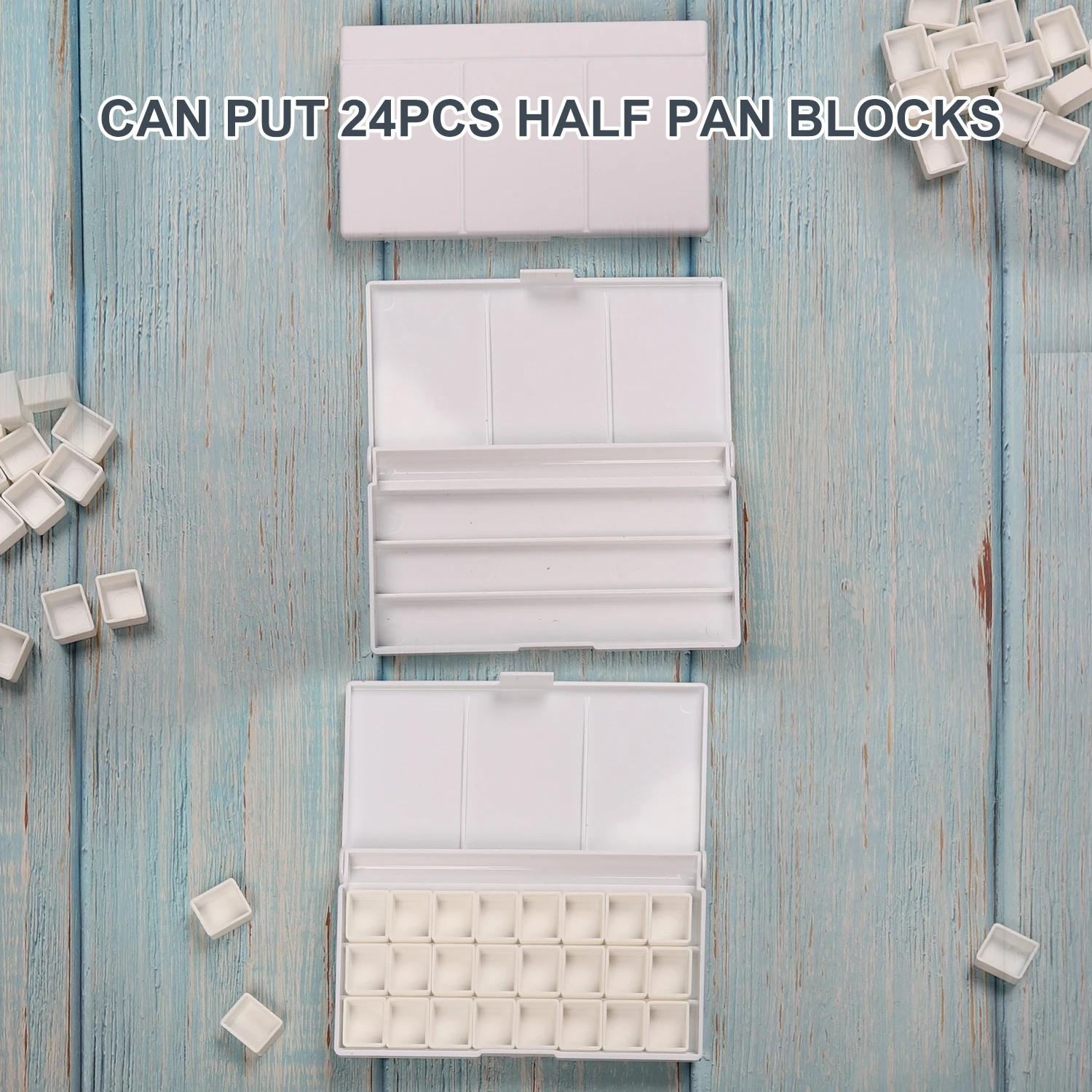 You can separate pigment into watercolor half paint pans then put into the metal box.