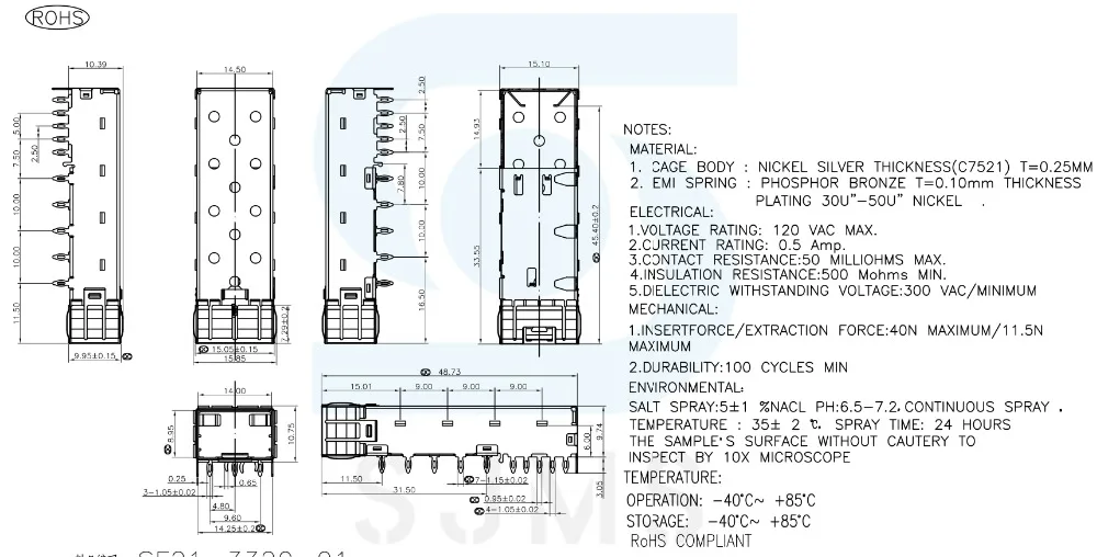 SFP Cage Press-Fit Solder PCB Right Angle Through Holes Cross for 1*1 20 Pin Fiber optic interface shield housing connector seat…