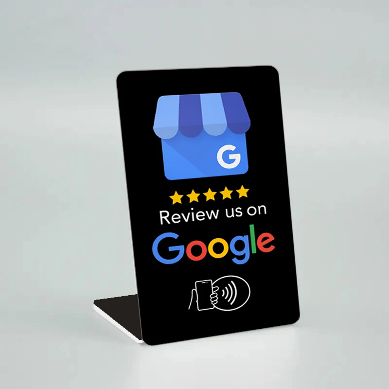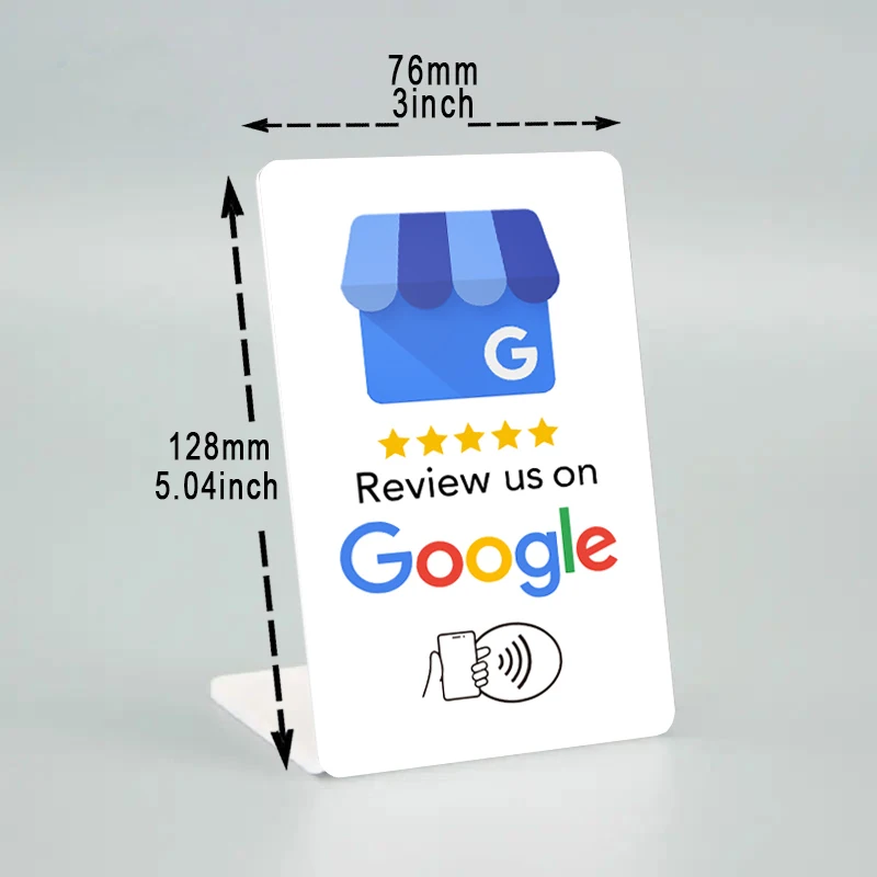 NFC quick link to Google Review or other soical media, you can program the NFC cards with NFC enabled mobile phone with NFC related APP, Such as APP "NFC Tagwriter", and write you google reviews URL into it