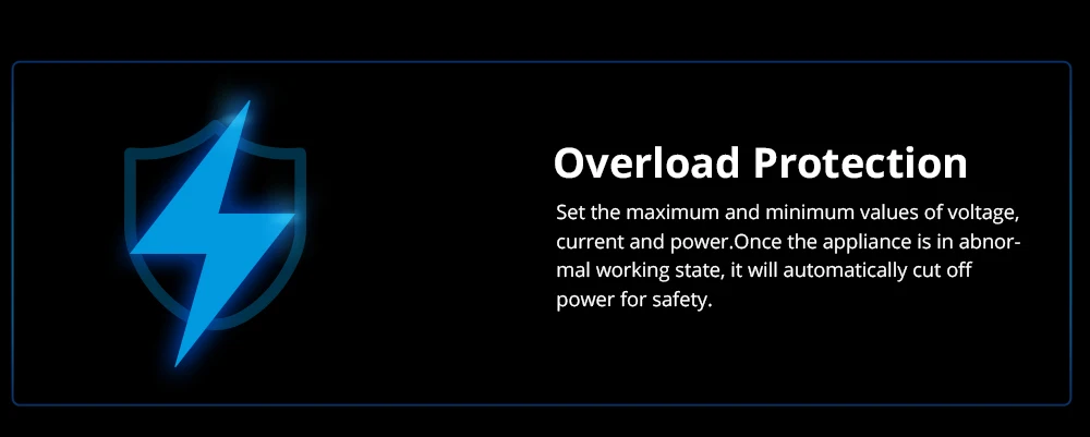 Set the maximum and minimum values of voltage, current and power. Once the appliance is in abnor-mal working state, it will automatically cut off power for safety.