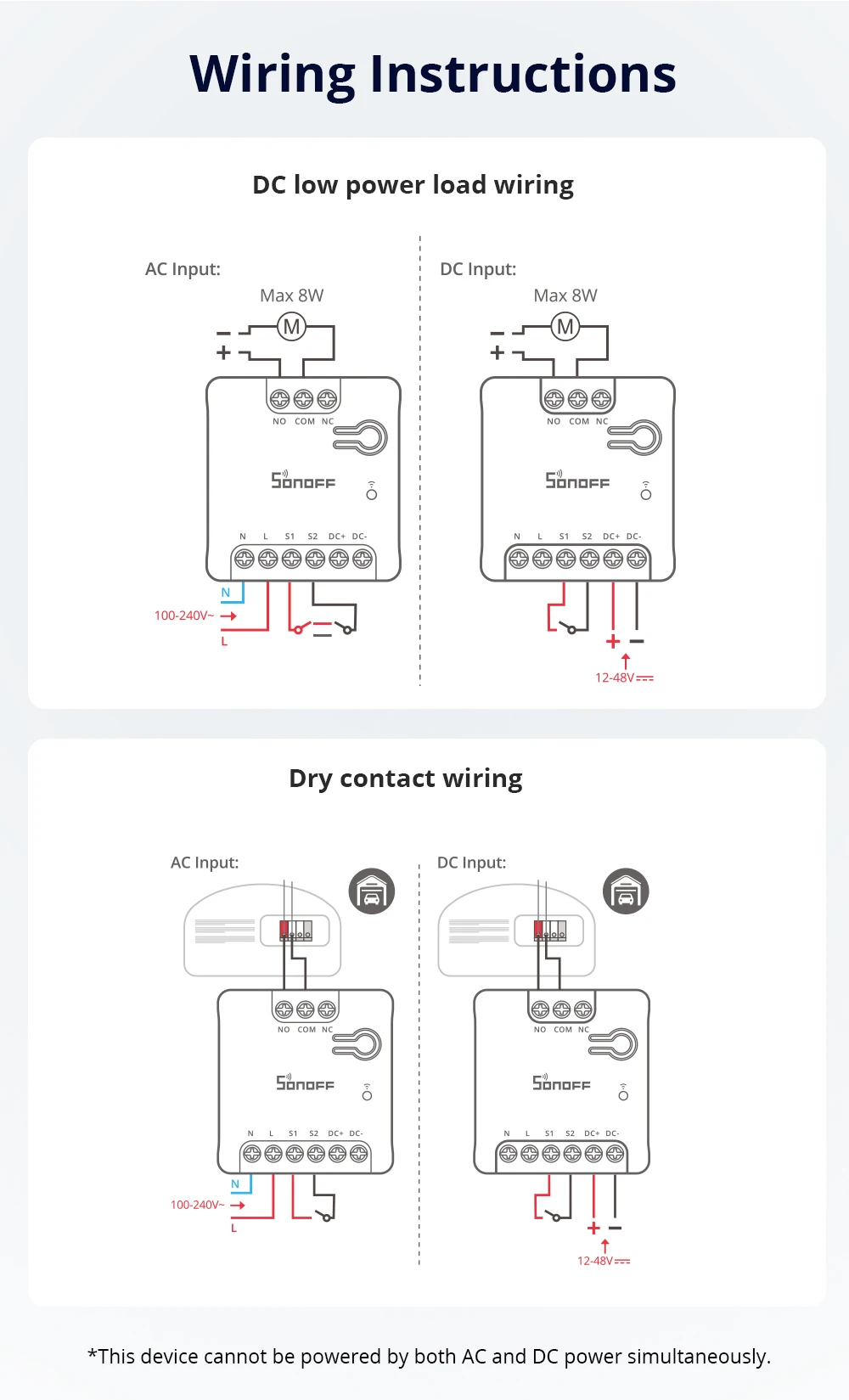 MINI-D is a Wi-Fi dry contact smart switch that supports AC/DC power supply. It can be used to control motors, garage doors, and other dry contact input devices, offering remote control, voice control, and other functions through the APP. With Matter protocol support, it can work across different platforms, including major operating systems and ecosystems like Amazon Alexa, Google Home, and Apple Home, Home Assistant, making it easier for users to manage their smart home ecosystem, improve interoperability, and enhance overall user experience.