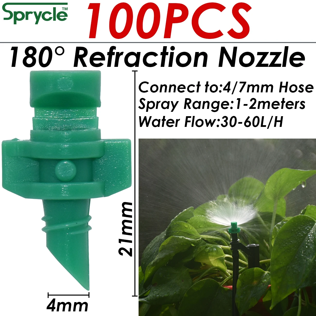 SPRYCLE 100PCS 90/180/360 Degree Refraction Nozzle Garden Sprinkler Agriculture Irrigation Plant Spray Nozzle Misting Greenhouse…