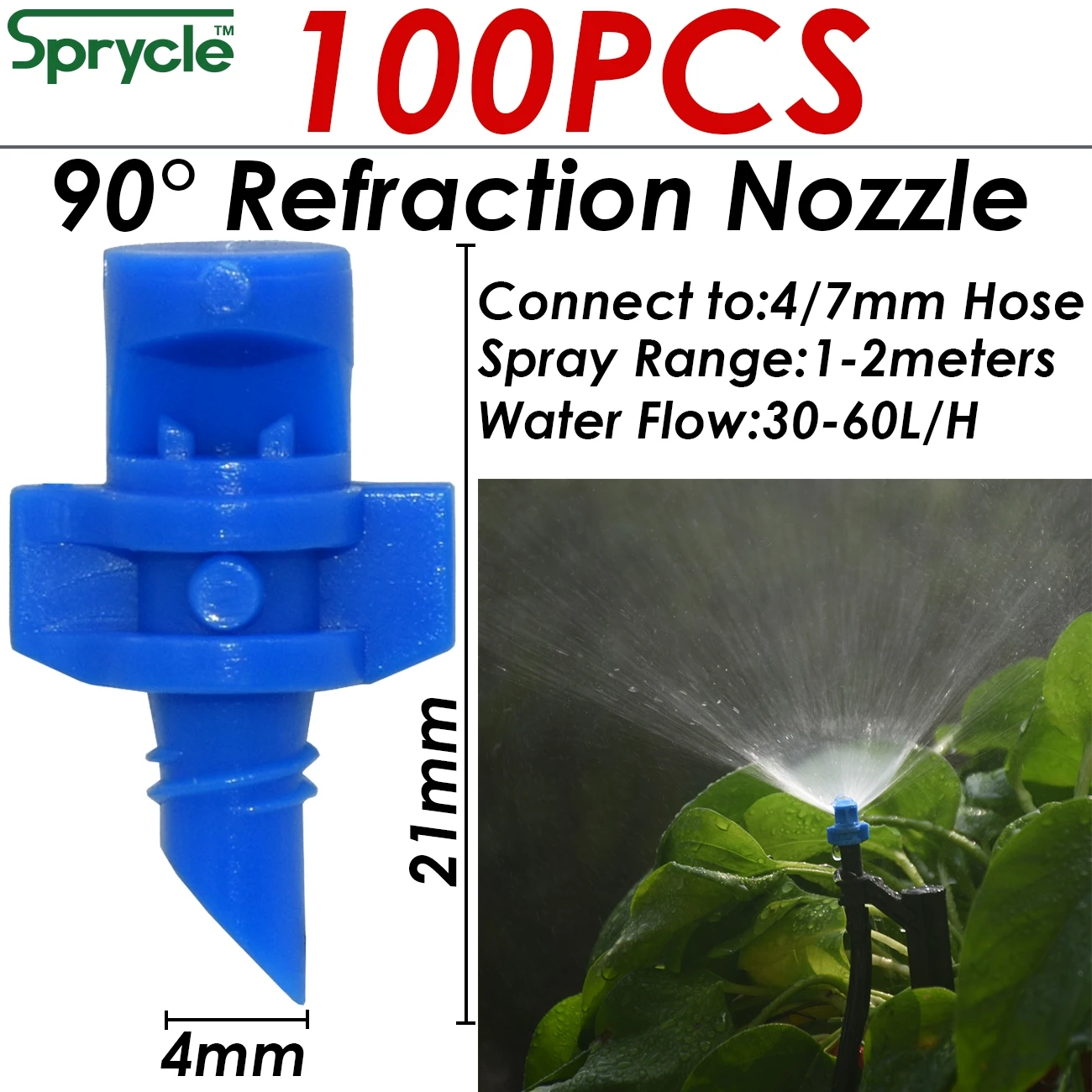 SPRYCLE 100PCS 90/180/360 Degree Refraction Nozzle Garden Sprinkler Agriculture Irrigation Plant Spray Nozzle Misting Greenhouse