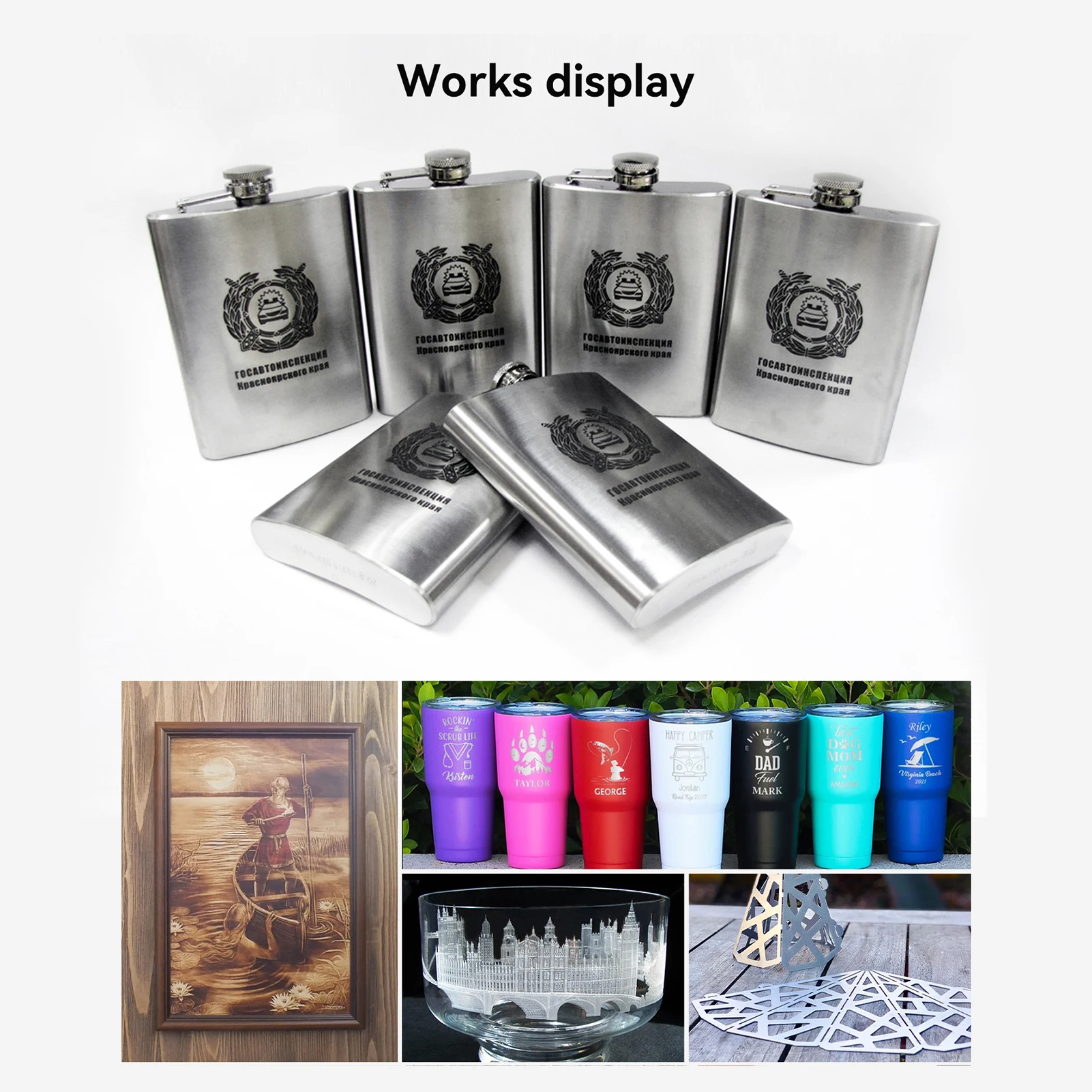 Carving materials: Basswood, pine, paulownia, plywood, yellow peach, mahogany, density board, kraft paper, non-transparent acrylic board, resin, rock board, ceramics, leaves, bamboo, cardboard, plastic, leather, PCB version, alumina, non-reflective Electroplated and painted metal, 304 mirror stainless steel, glass, ceramics, cotton cloth, slate;