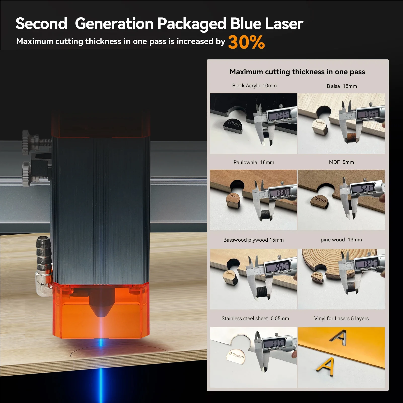 ♦ More stable and high-speed structure: The bottom frame of E6 Pro is formed in one piece, and the X-axis metal adopts a double-axis guide rail structure to work with small jitter, ensuring that the machine does not jitter when running at a high speed of 36000mm/Min; 365x305mm working area, ultra-fine laser focal area is reduced to 0.06x0.06mm.