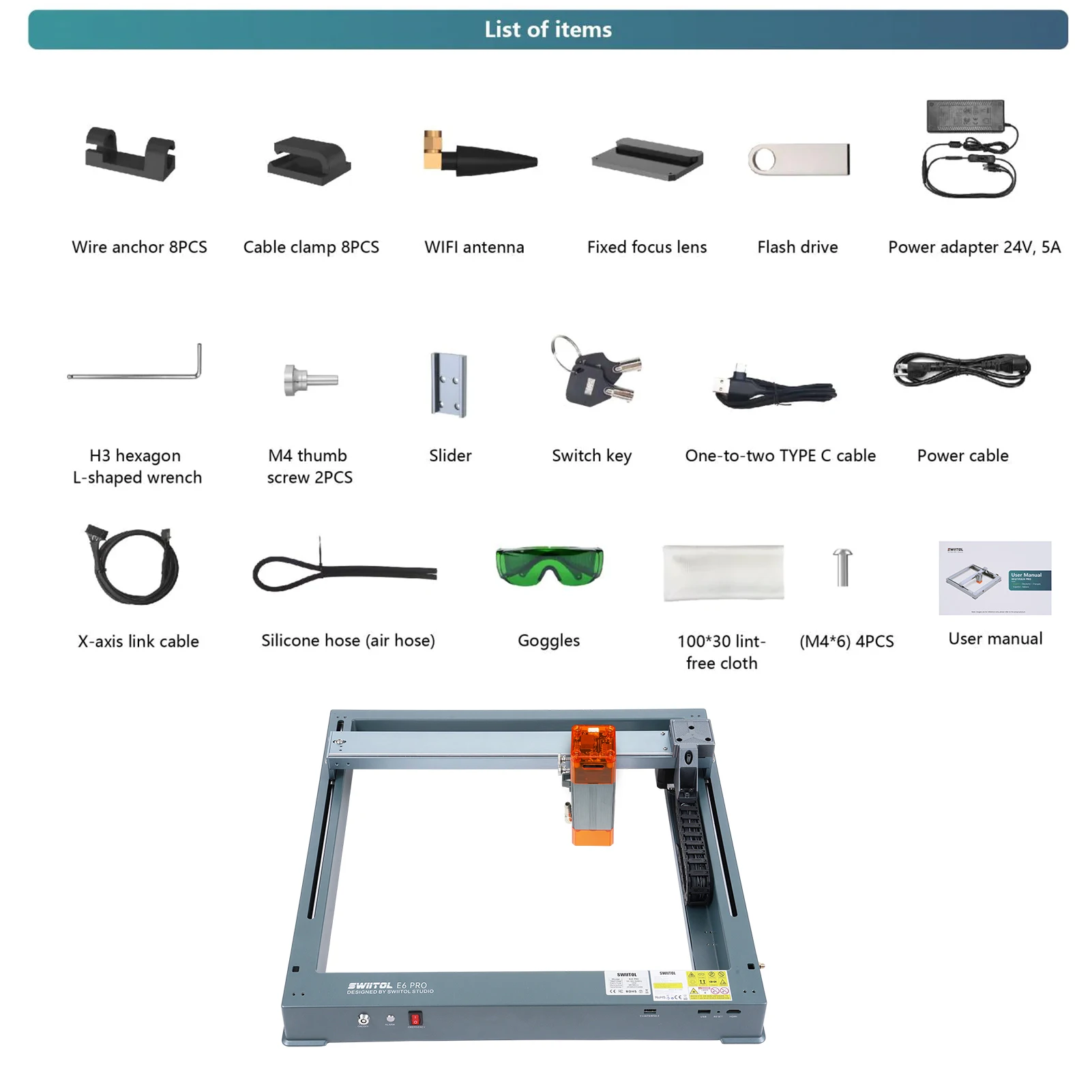 Features:♦ Integrated Structure Laser Engraver: The overall frame of Swiitol E6 Pro is made of aluminum alloy and can be used out of the box without i…