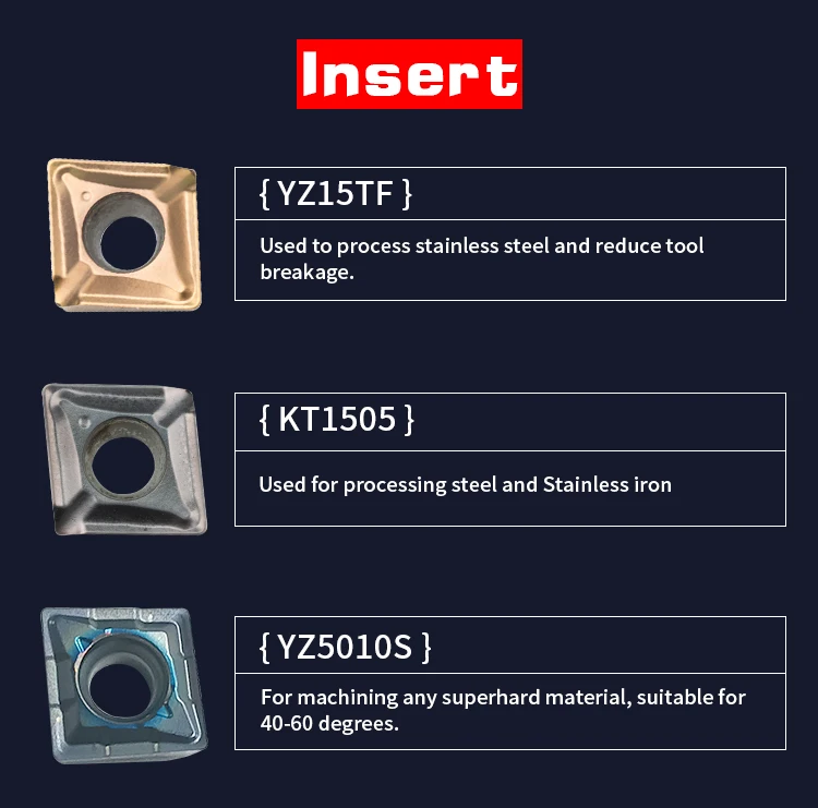 YZ5010S:For machining any superhard material, suitable for40-60 degrees.