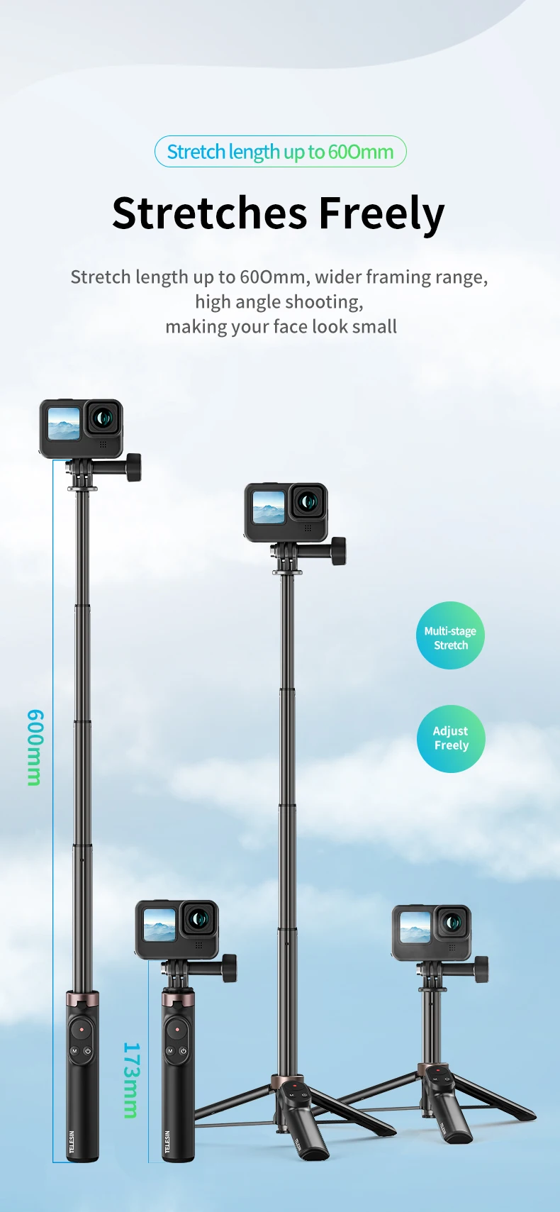 5. Stretch length 173mm to 600mm,wider framing range,high angle shooting.
