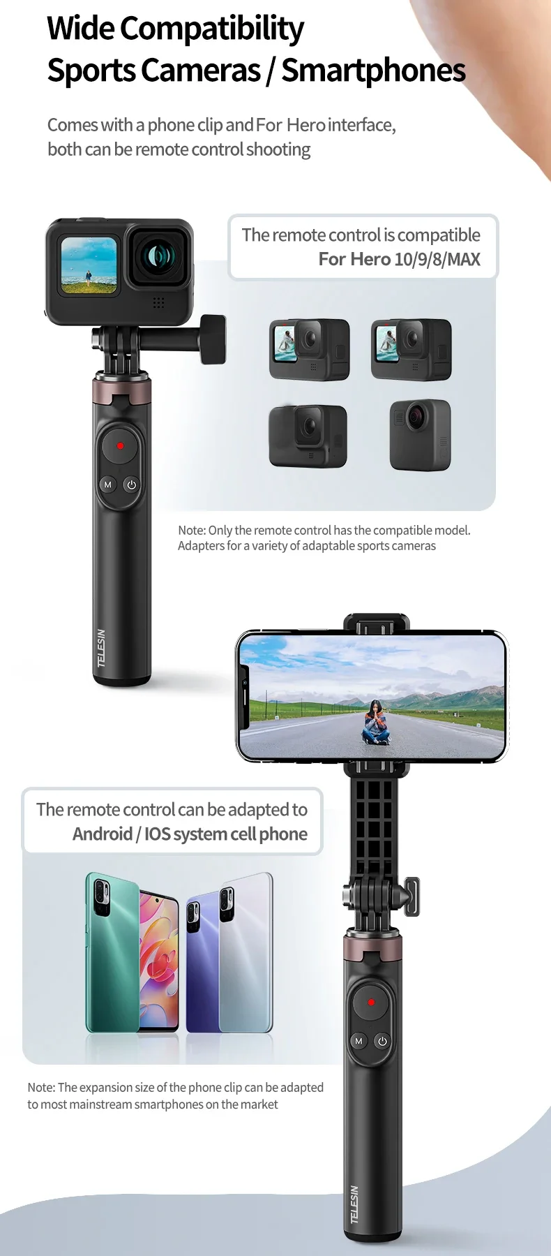 Features: 1. Fits GoPro Hero 13 12,Hero 11,Hero 10,GoPro Hero 9,GoPro Hero 8,GoPro Max and most Android/IOS smartphone. 2. Wireless Bluetooth remote c…