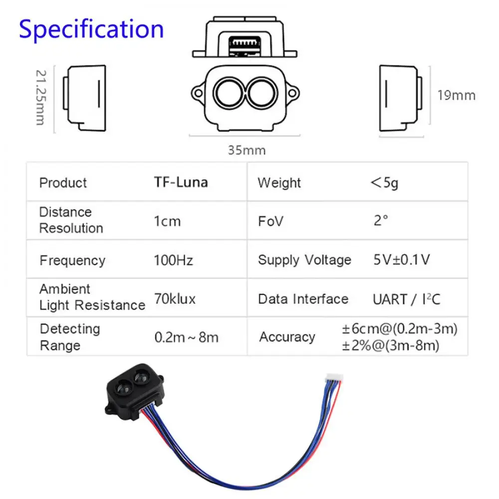 TF-Luna Lidar Ranging Sensor Module Range Finder Sensor Single-Point Micro Ranging Module for Arduino Pixhawk 5V UART IIC