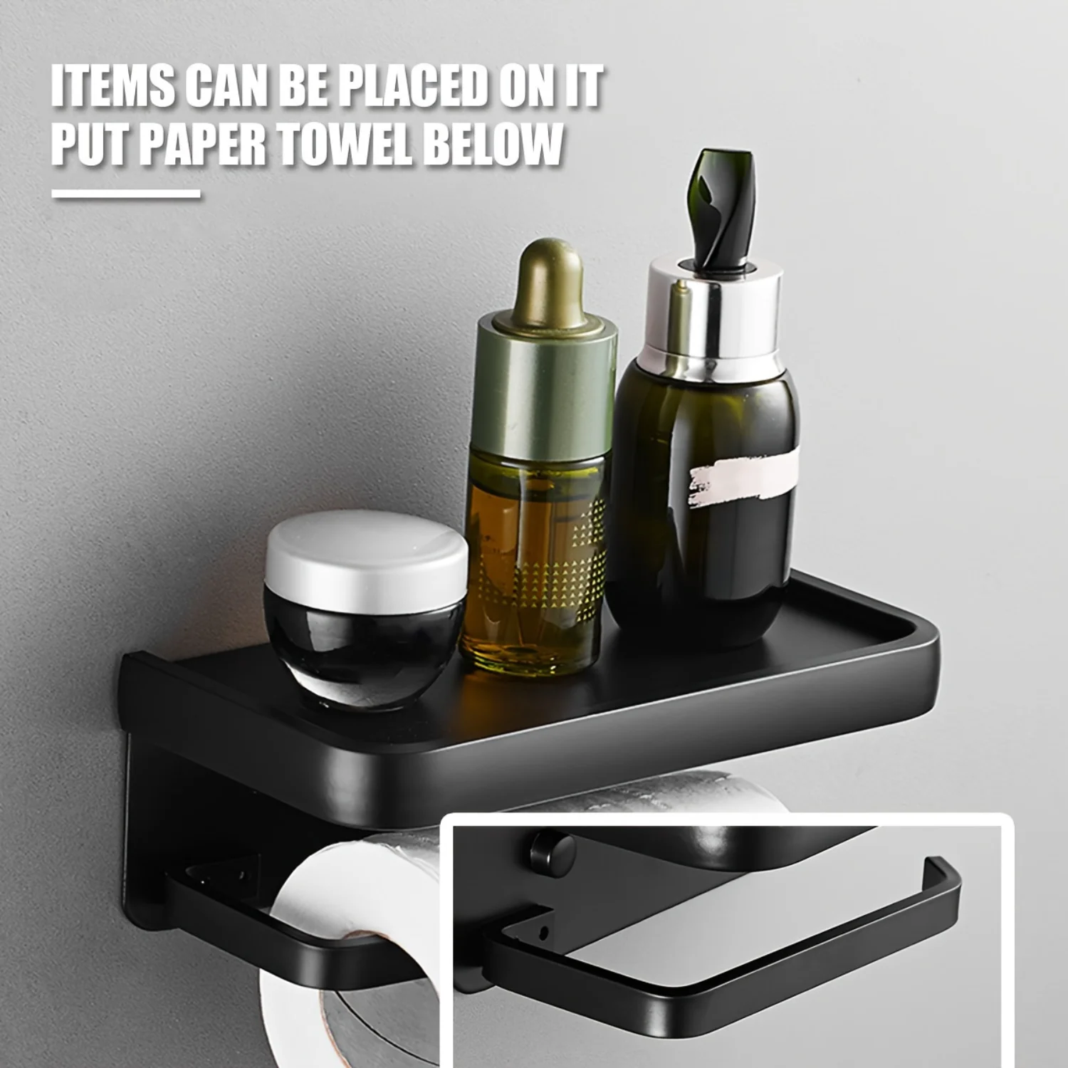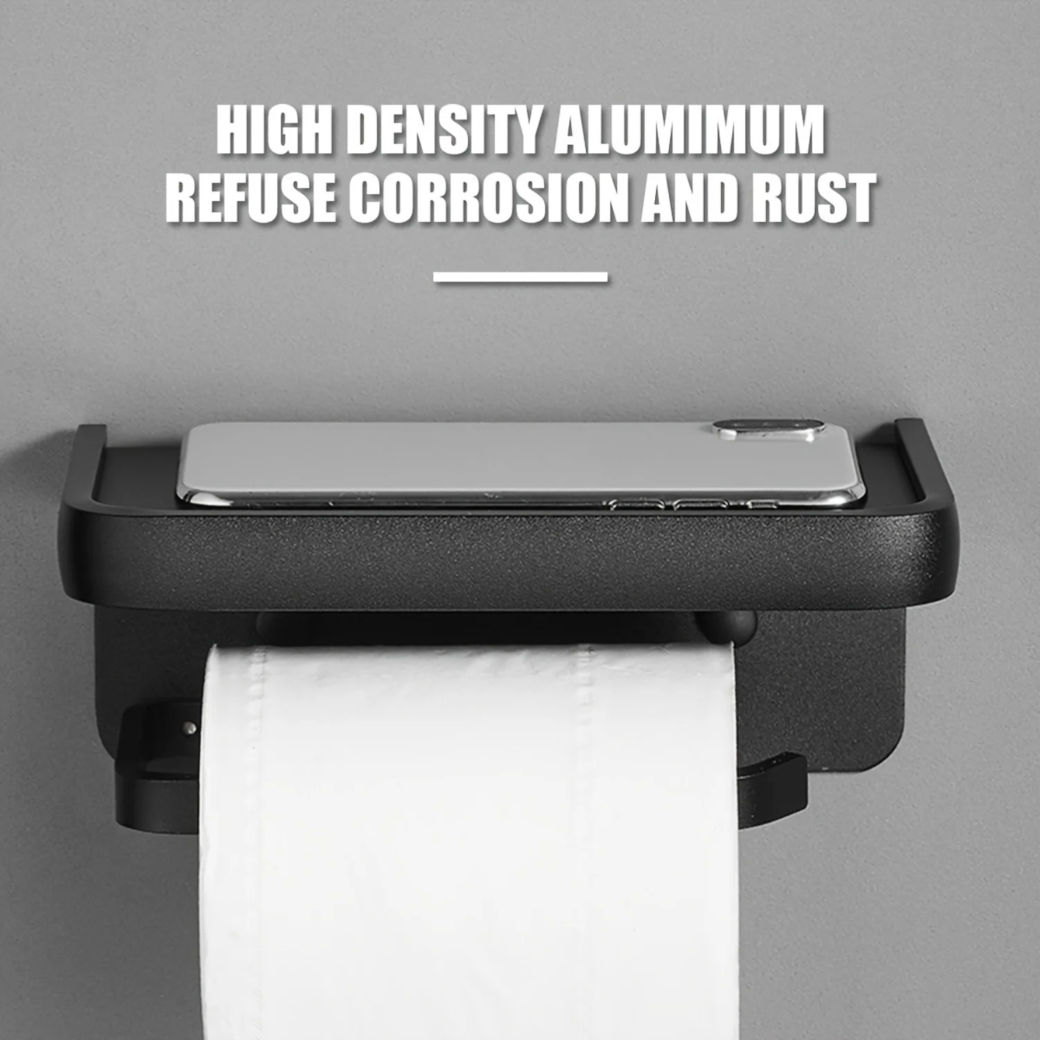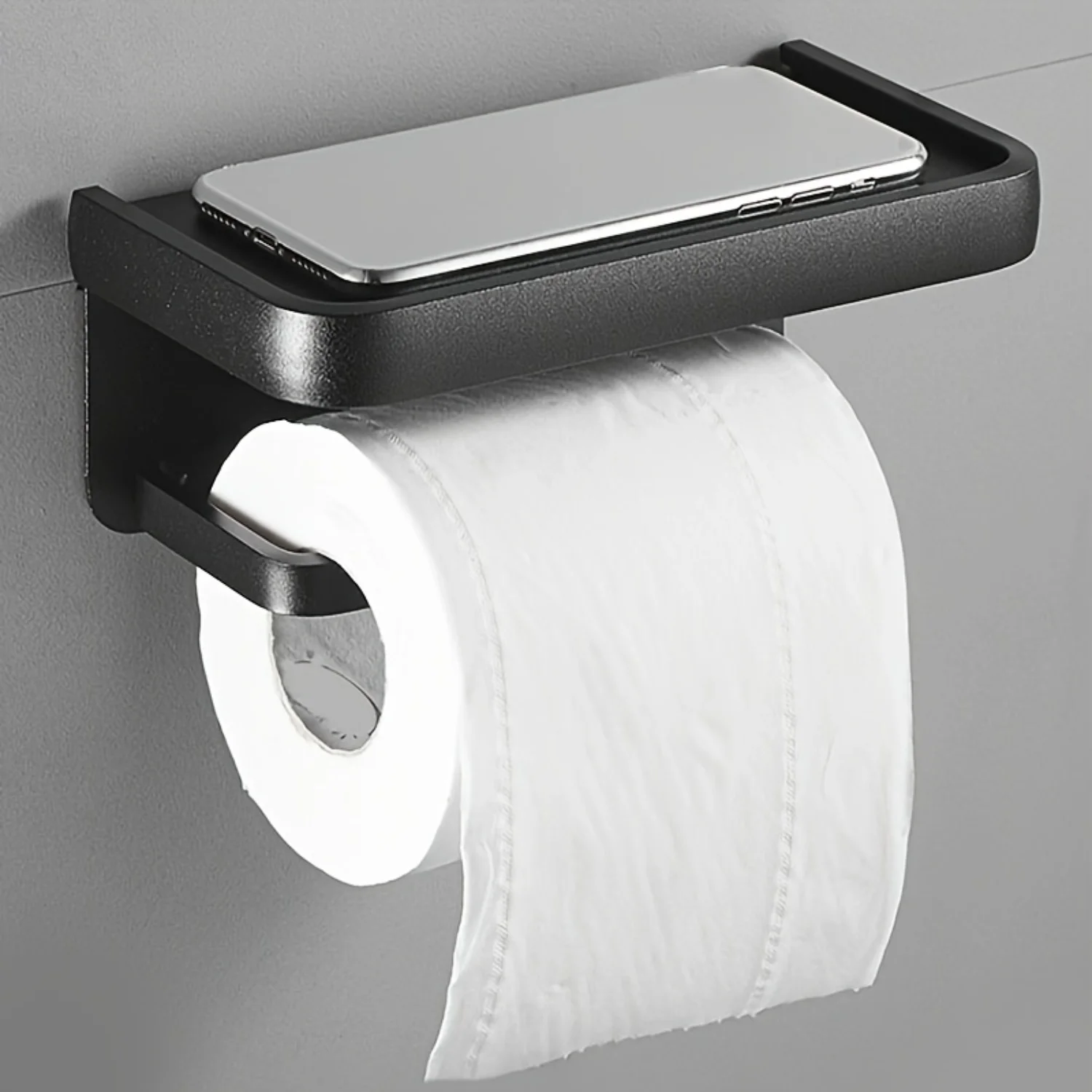 1. A sleek and modern toilet roll holder made of space aluminum in a classic black finish. This non-fade toilet paper shelf is both functional and stylish, making it a great addition to any bathroom.