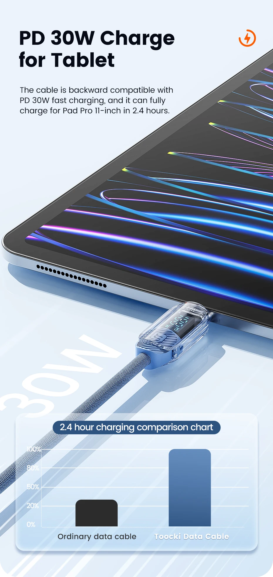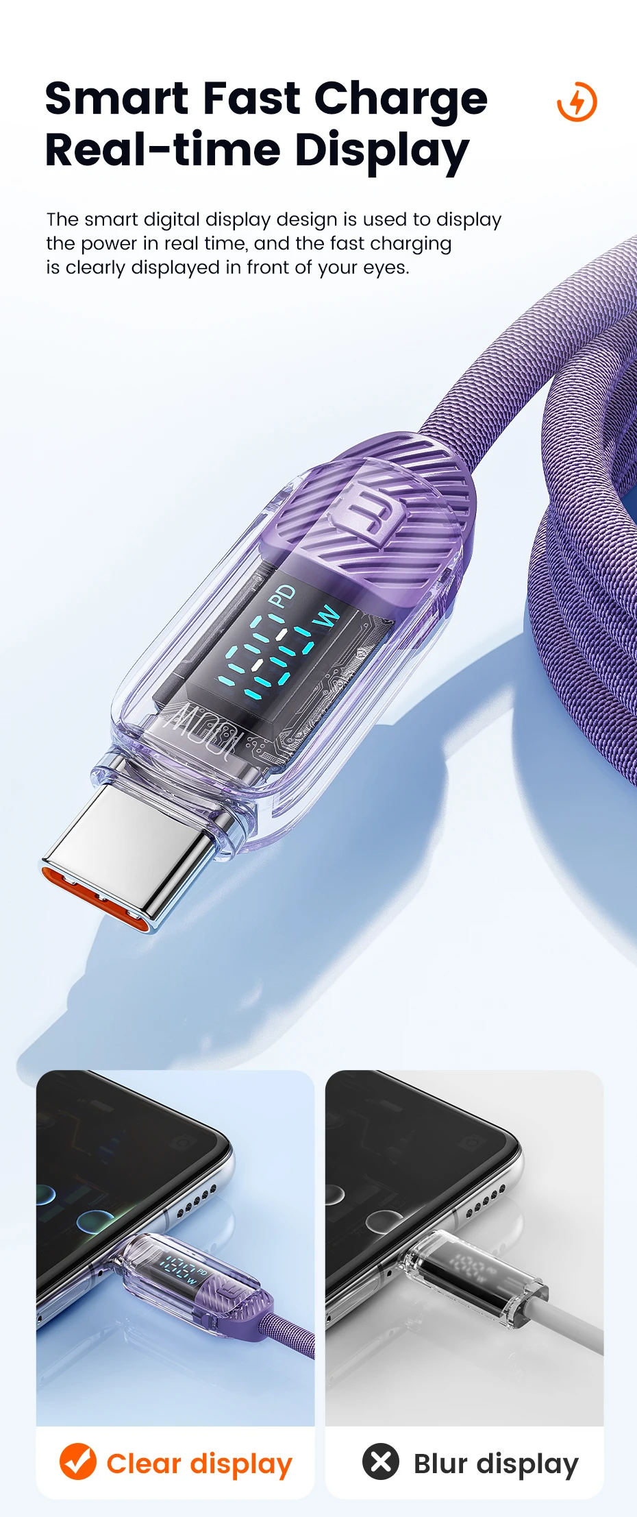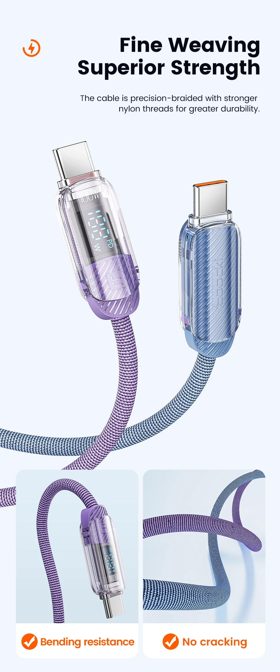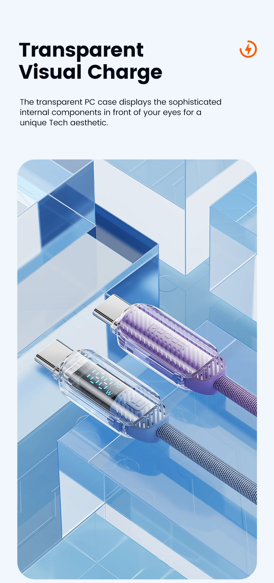 Toocki Transparen Type C to Type C Cable,PD 100W(20V,5A),for iPhone Smsung Huawei Xiaomi Macbook Laptop