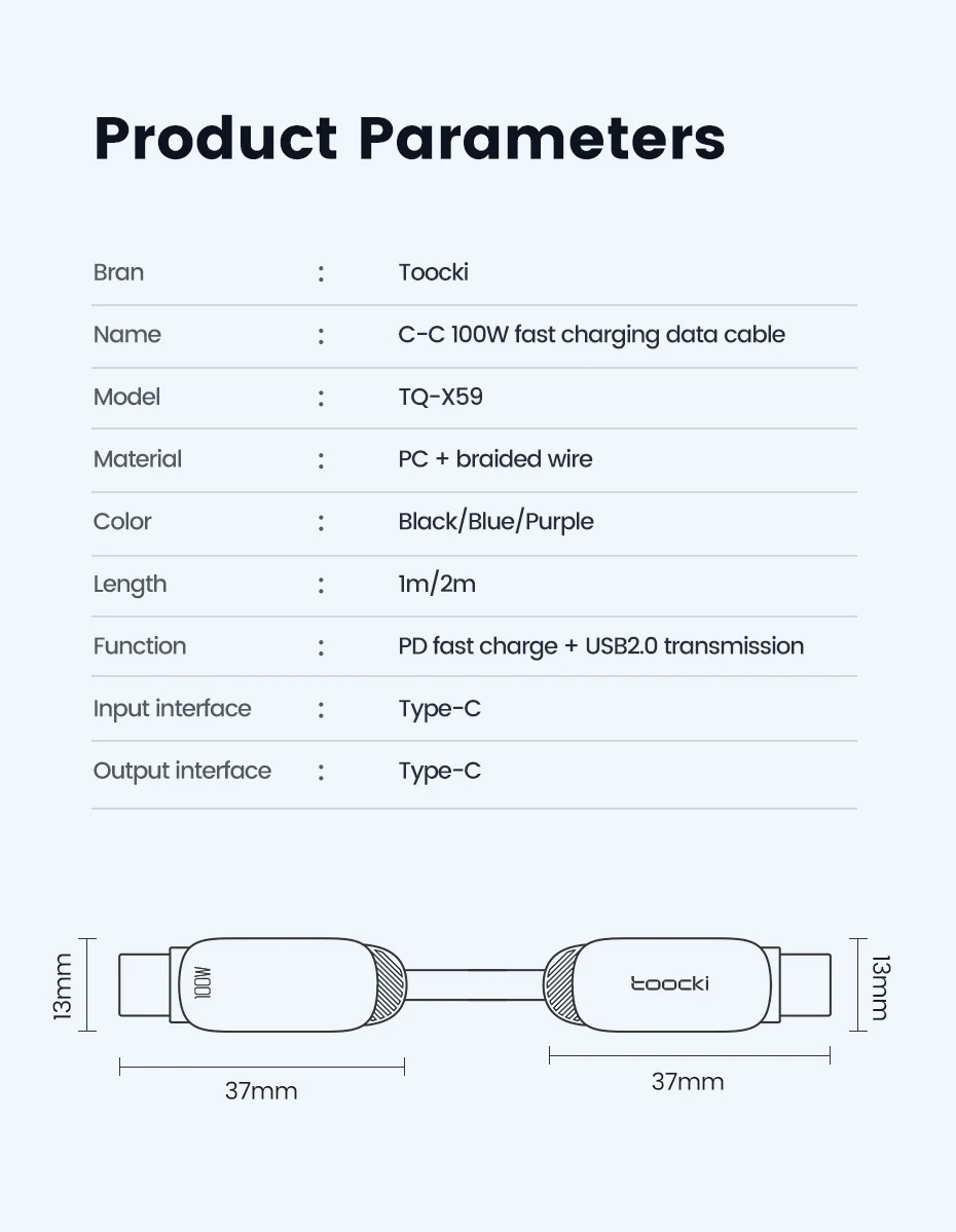Function:PD 100W Fast Charge + USB2.0 Data Trasmission